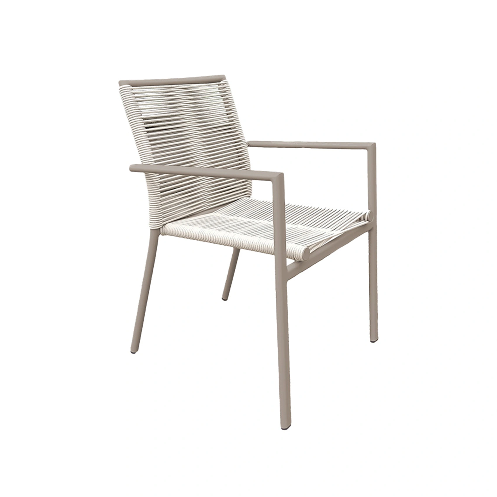 Ljungholm matstol kombinerar skandinavisk enkelhet med subtil elegans. Den lätta aluminiumramen ger en modern, grafisk känsla, medan sits och rygg i flätad olefin-rep skapar mjuka linjer och en inbjudande komfort. Stolens stapelbara funktion gör den lika praktisk som estetisk, perfekt för både privata hem och professionella miljöer.