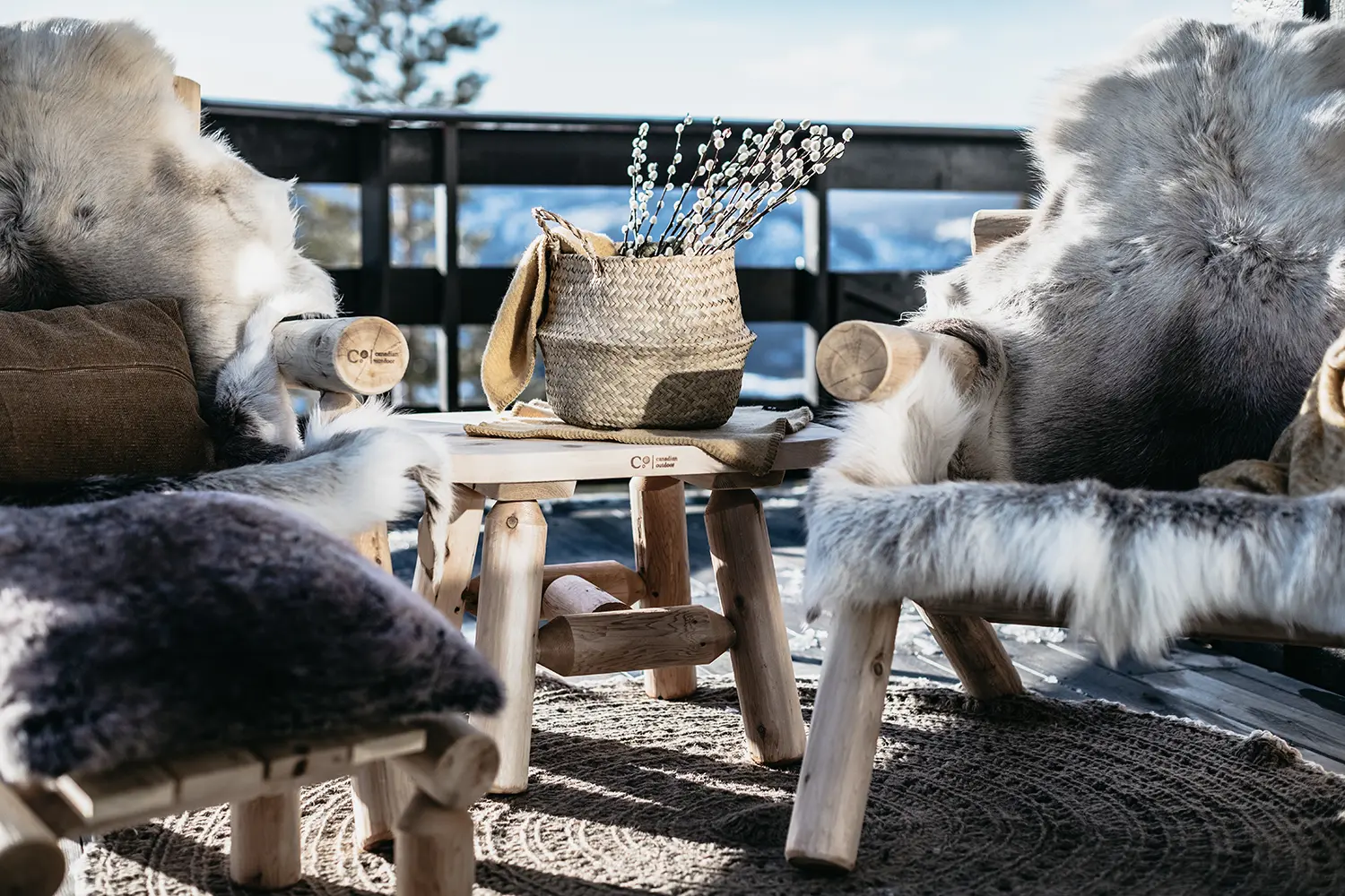 Rustikt sidobord i obehandlad Northern White Cedar. Ram i rund stock. Kompatibelt med alla Log liggstolar och bänkar.