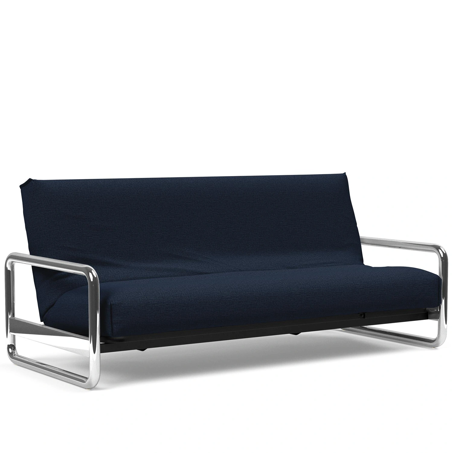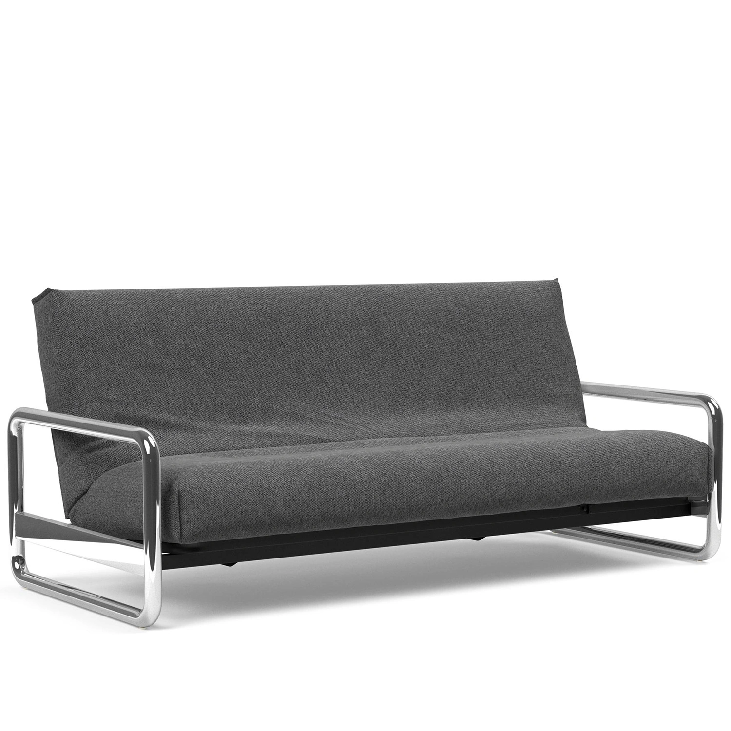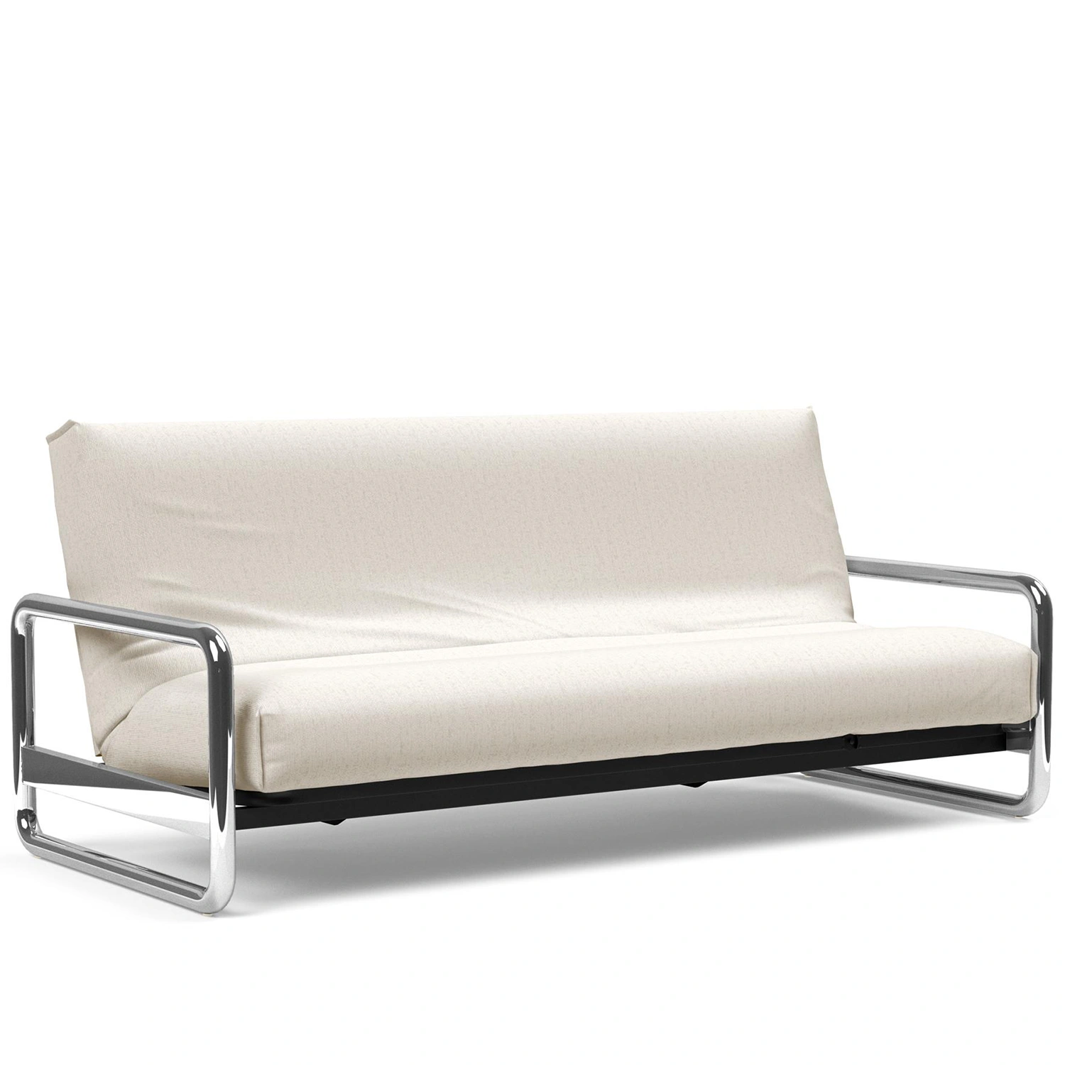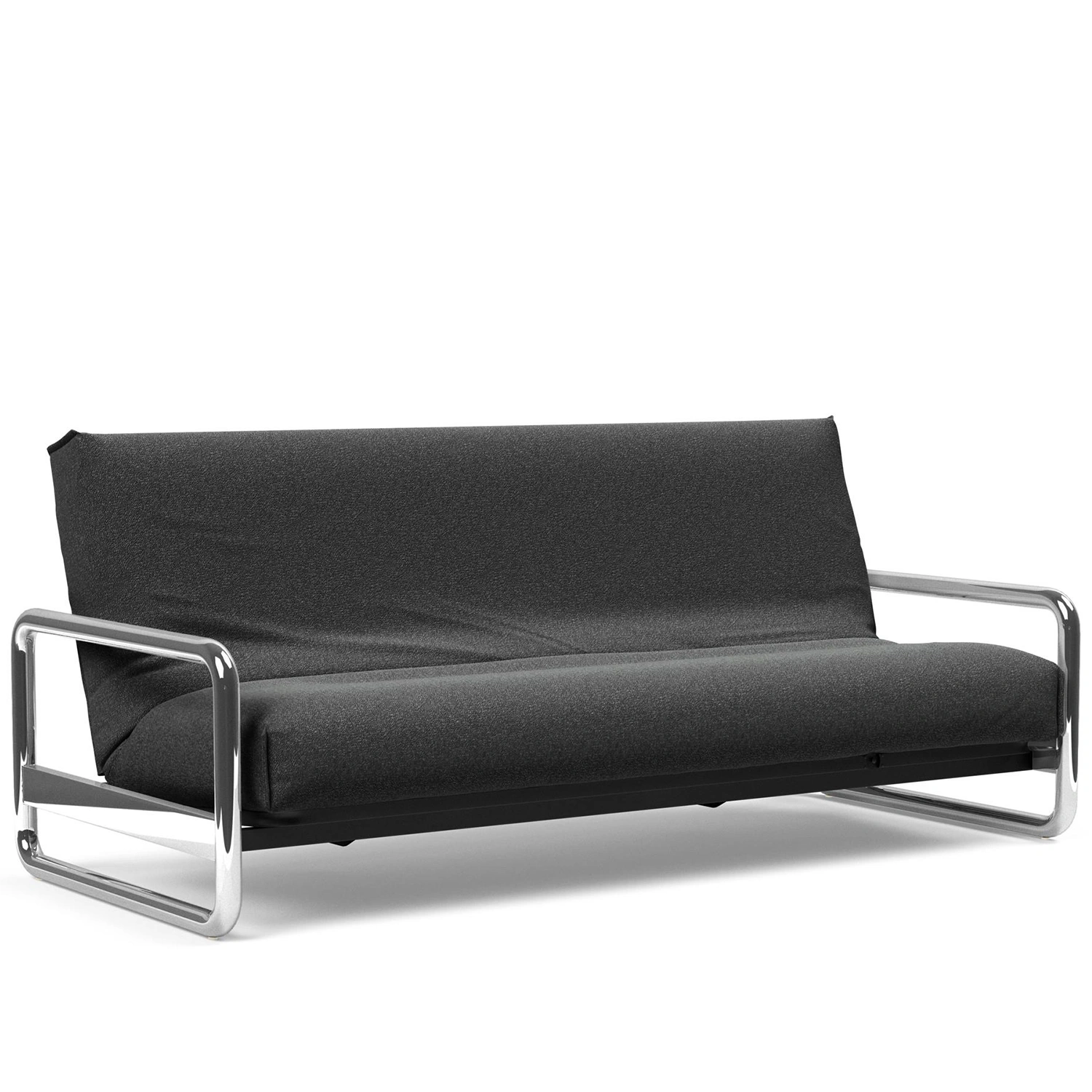 Lomira är en stilren bäddsoffa med industriell karaktär, designad av Per Weiss för Innovation Living. Med sin mattsvarta stålram, kromade armstöd och eleganta Nordic Cover får soffan ett tidlöst uttryck som passar lika bra i moderna hem som i designmedvetna compact living-lösningar.