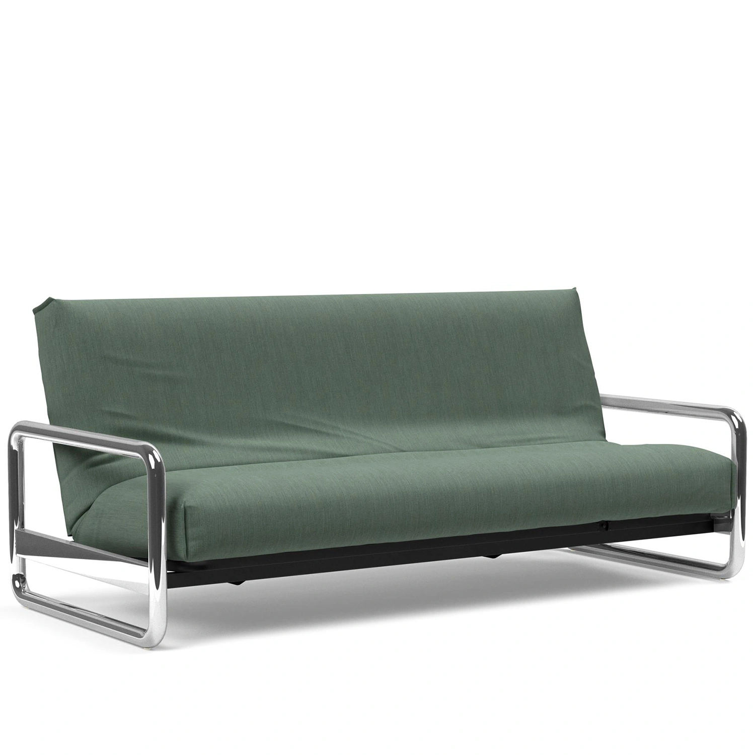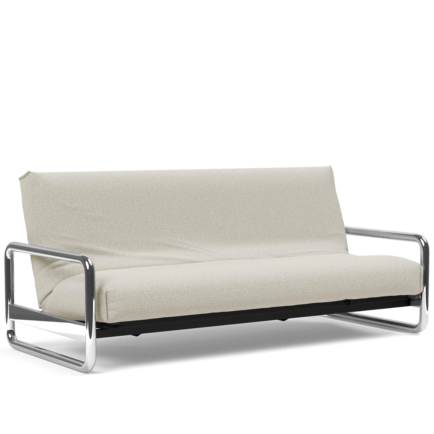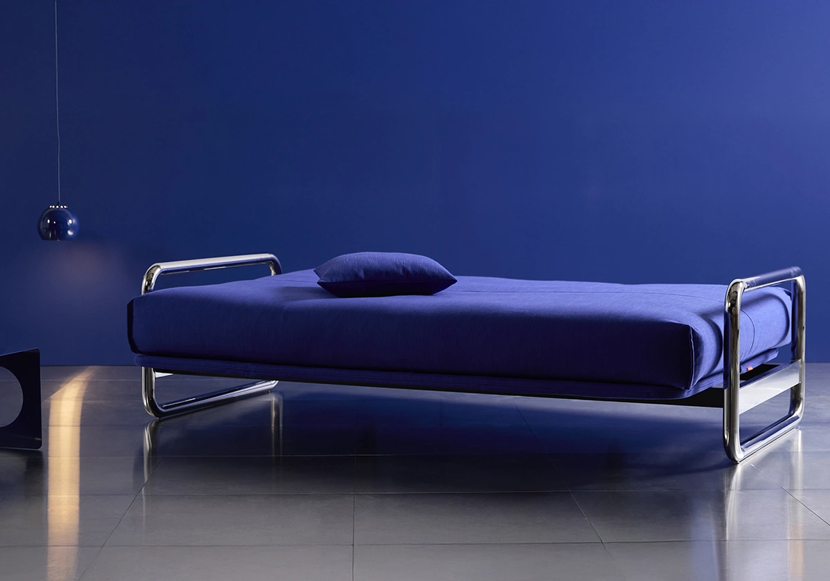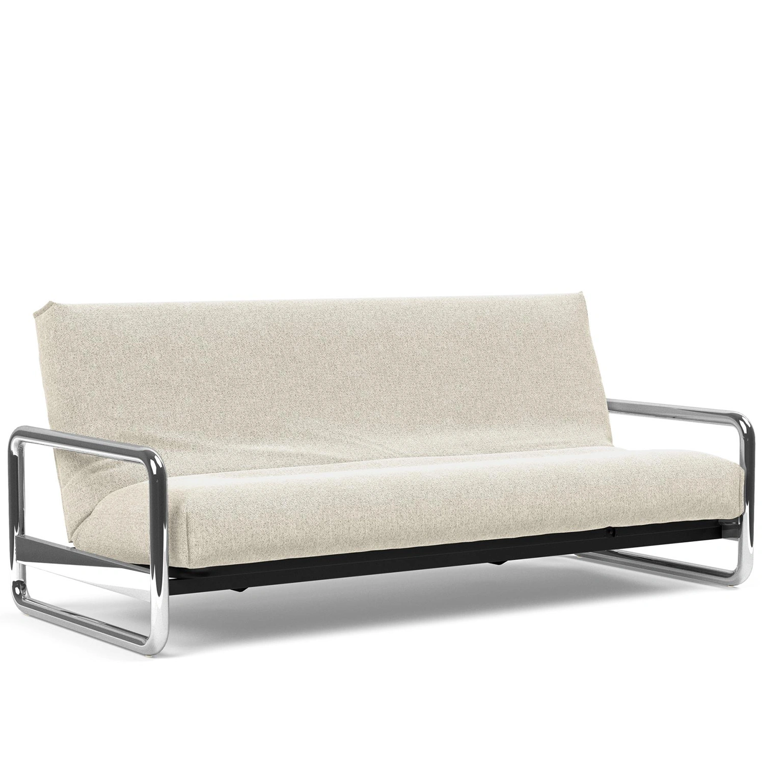 Lomira är en stilren bäddsoffa med industriell karaktär, designad av Per Weiss för Innovation Living. Med sin mattsvarta stålram, kromade armstöd och eleganta Nordic Cover får soffan ett tidlöst uttryck som passar lika bra i moderna hem som i designmedvetna compact living-lösningar.