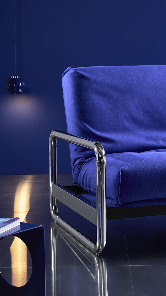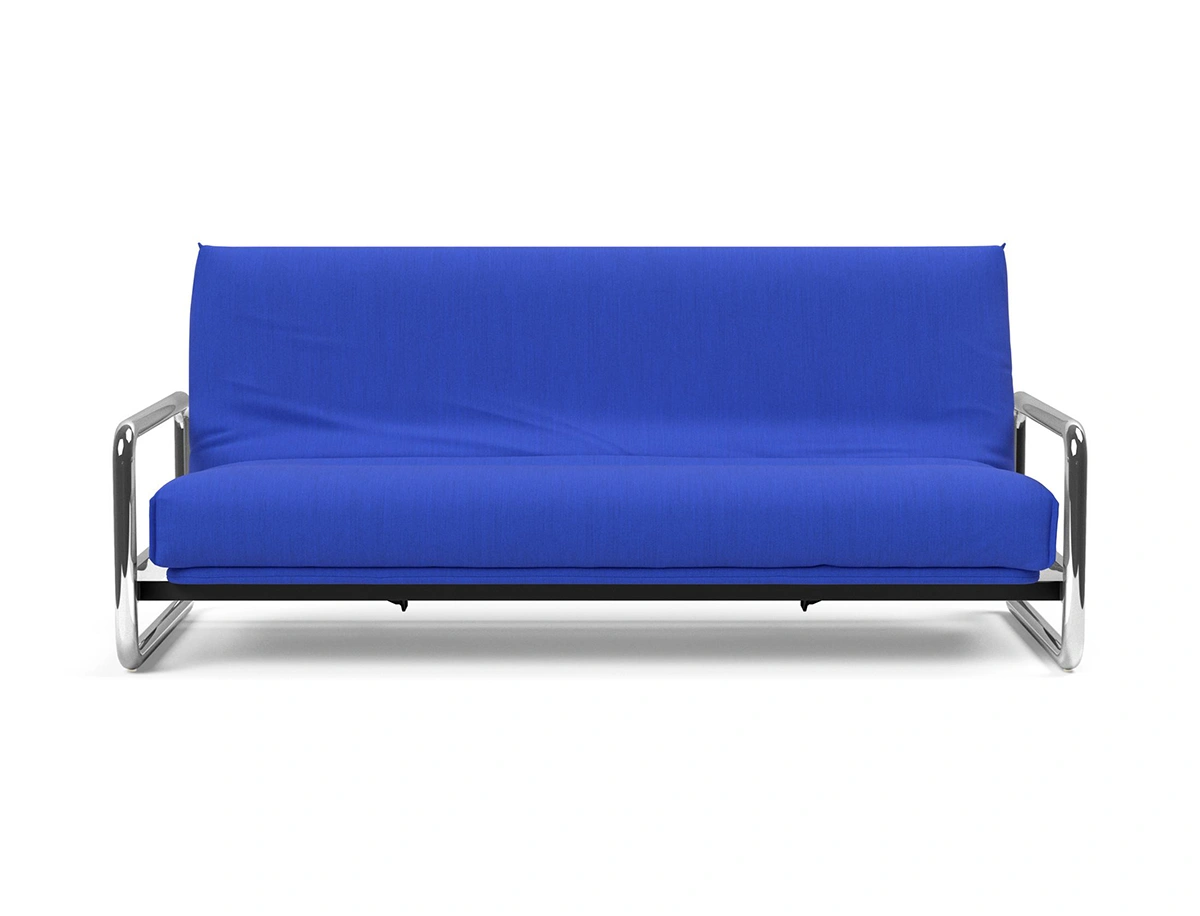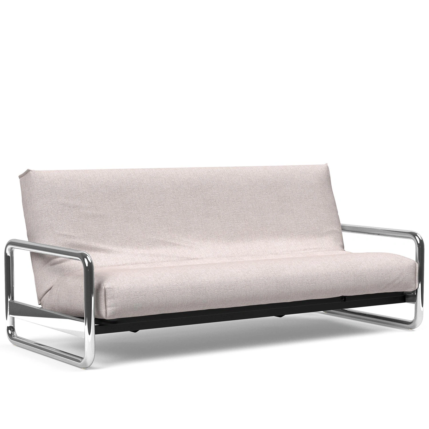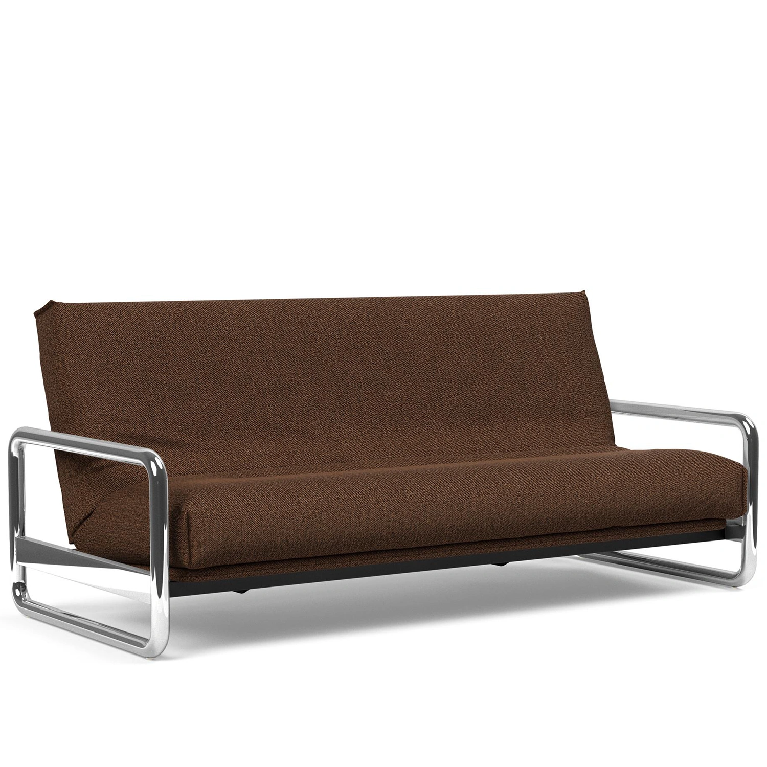 Lomira är en stilren bäddsoffa med industriell karaktär, designad av Per Weiss för Innovation Living. Med sin mattsvarta stålram, kromade armstöd och eleganta Nordic Cover får soffan ett tidlöst uttryck som passar lika bra i moderna hem som i designmedvetna compact living-lösningar.