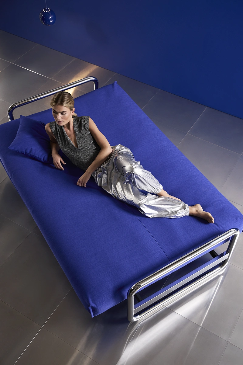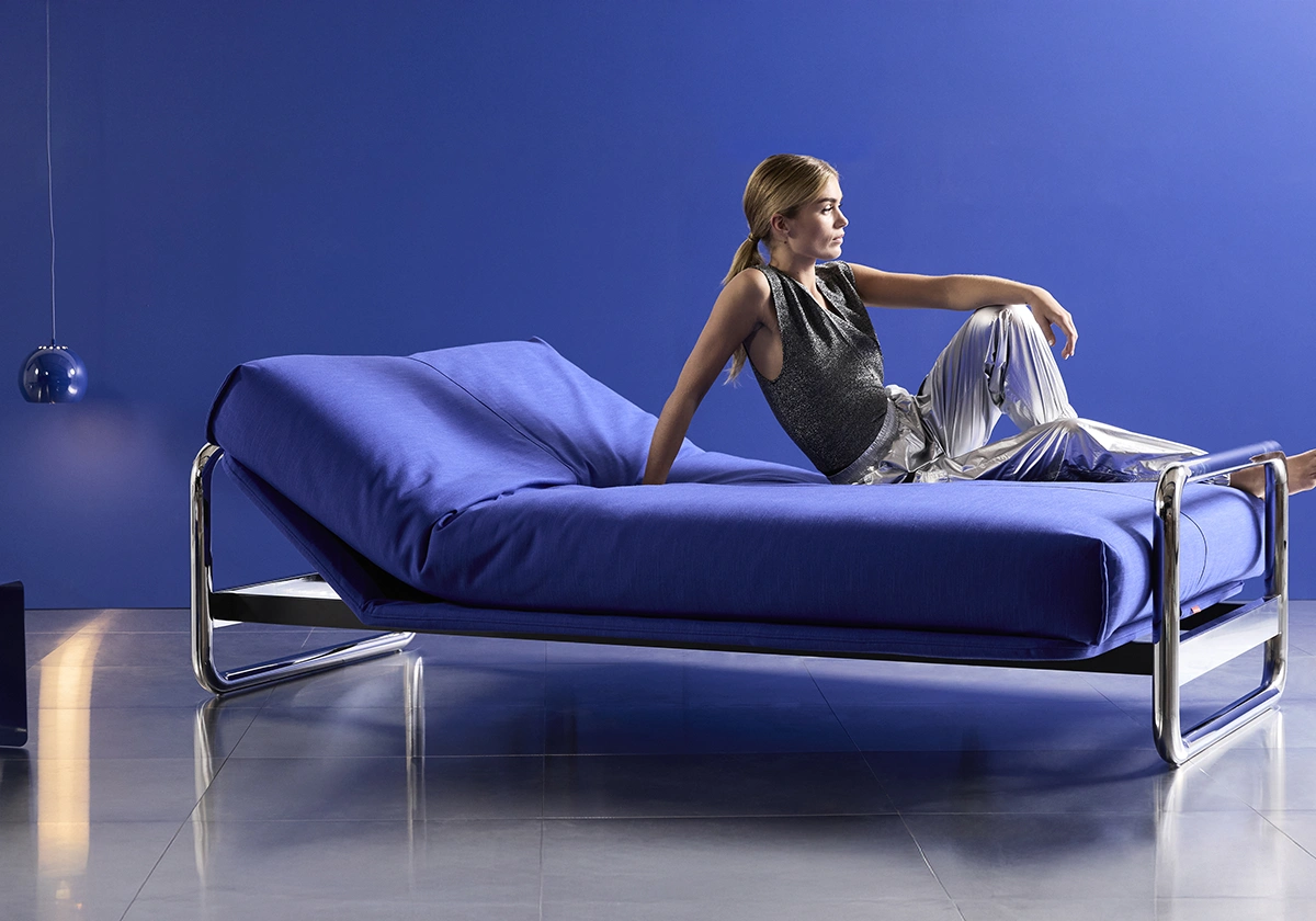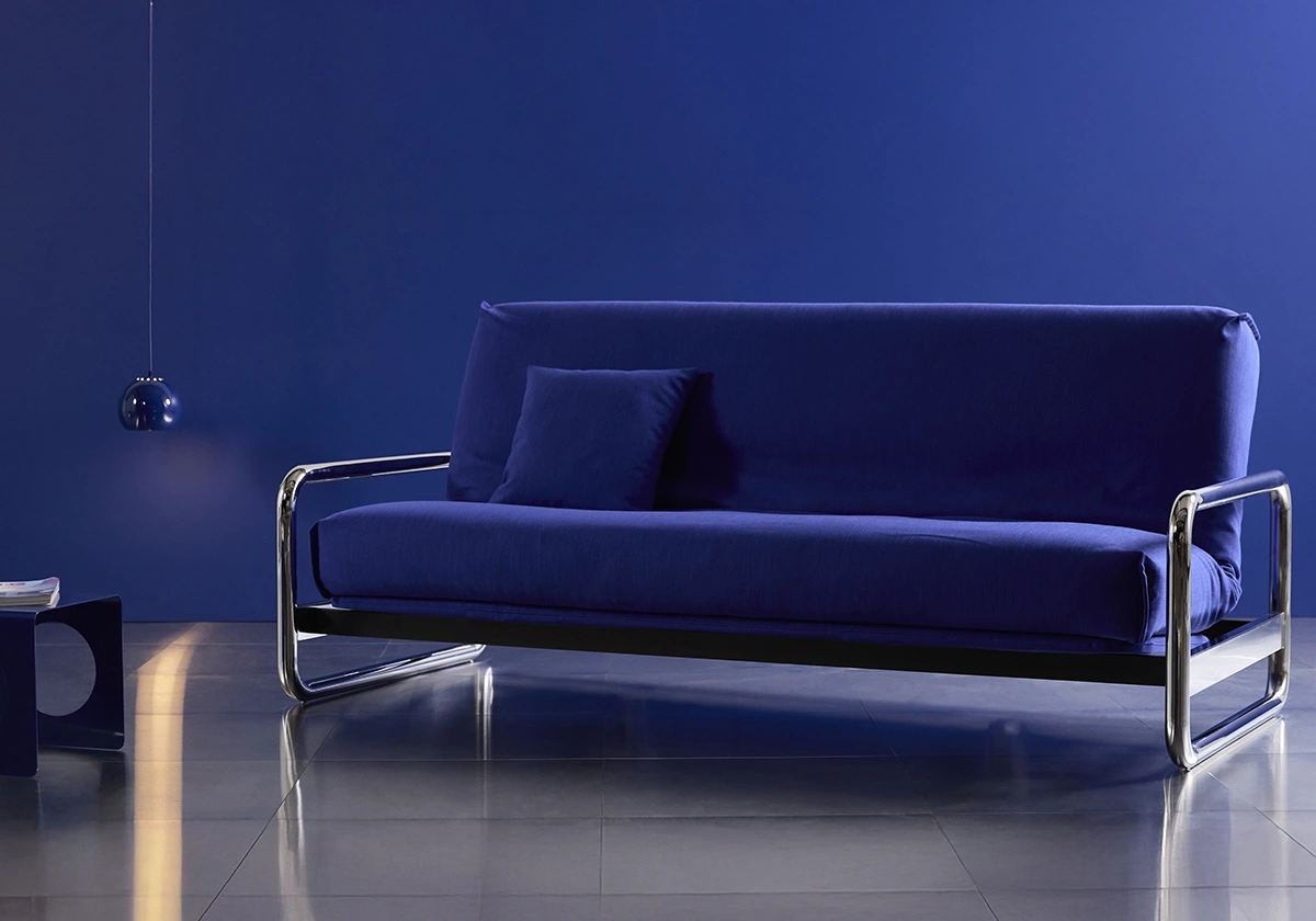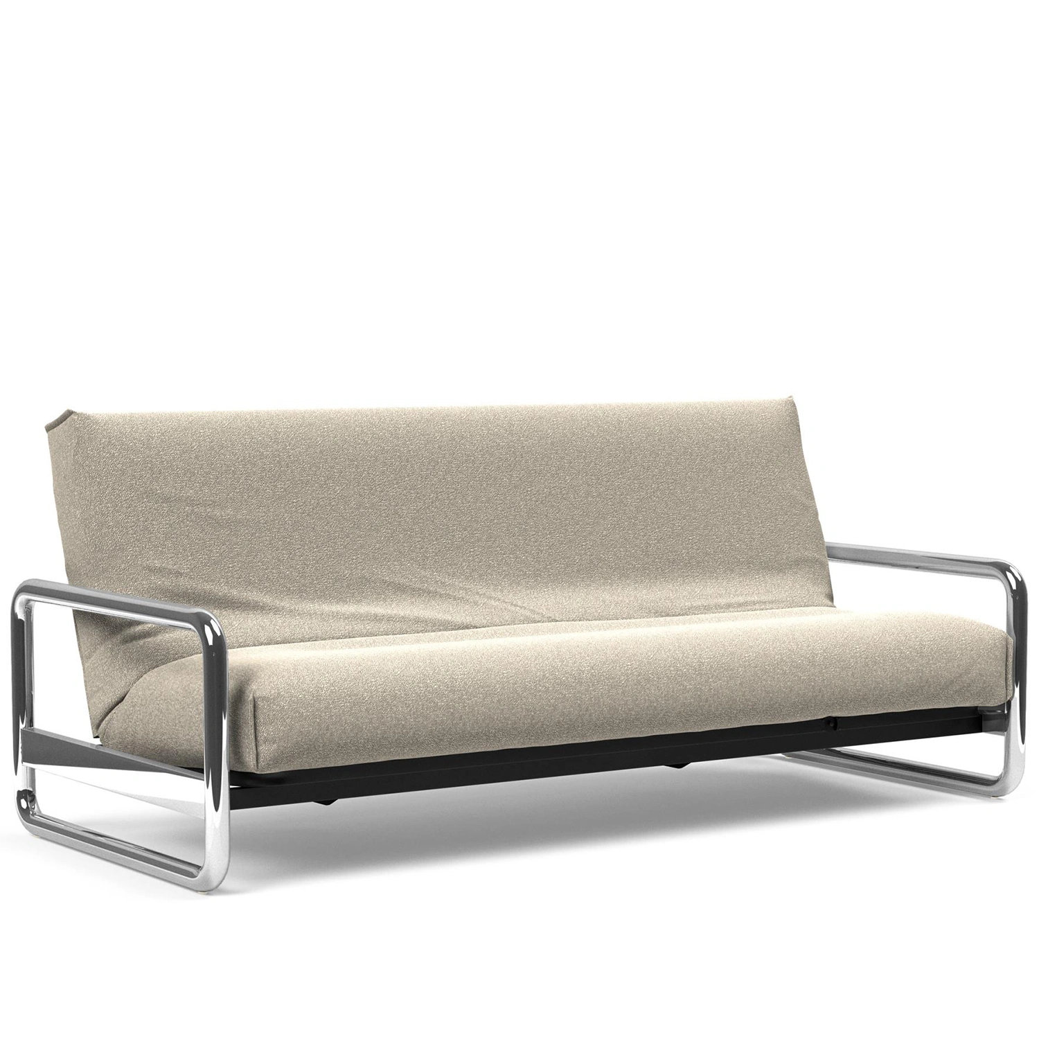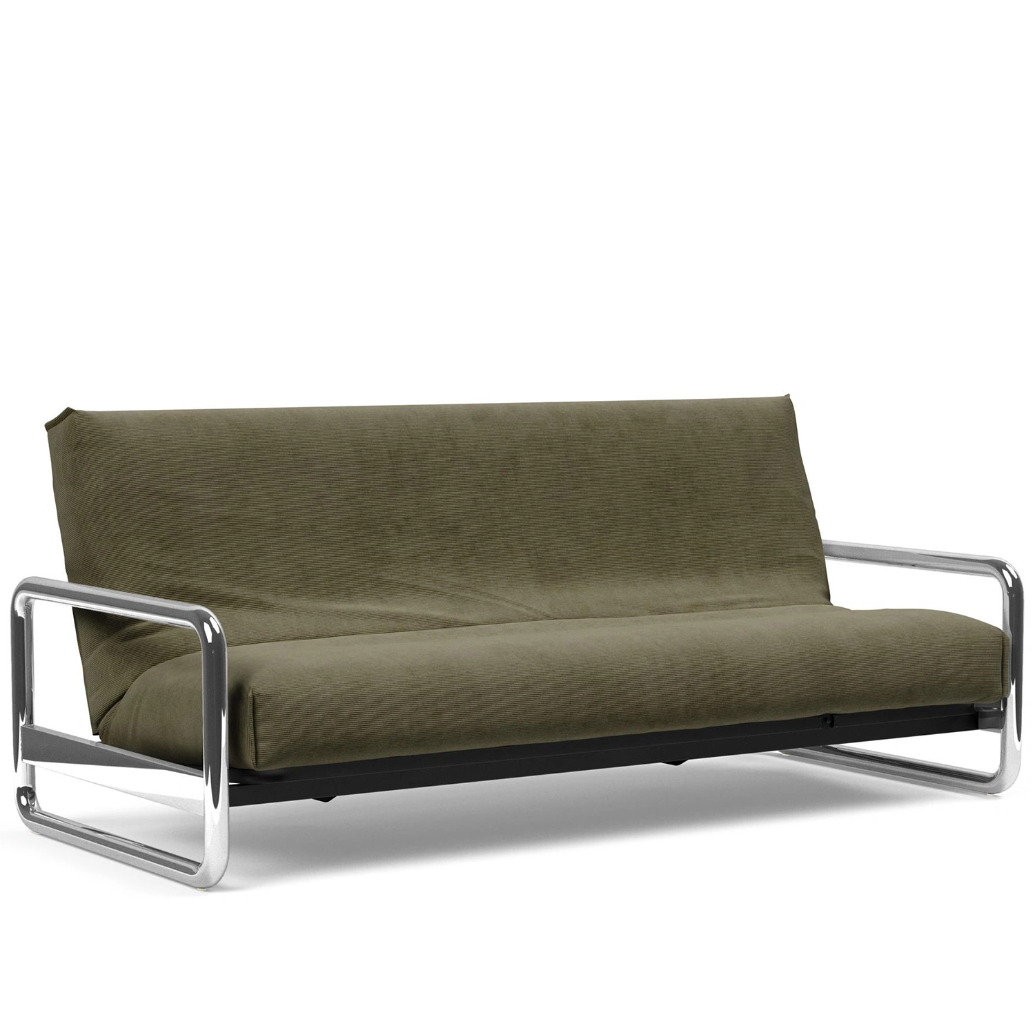 Lomira är en stilren bäddsoffa med industriell karaktär, designad av Per Weiss för Innovation Living. Med sin mattsvarta stålram, kromade armstöd och eleganta Nordic Cover får soffan ett tidlöst uttryck som passar lika bra i moderna hem som i designmedvetna compact living-lösningar.