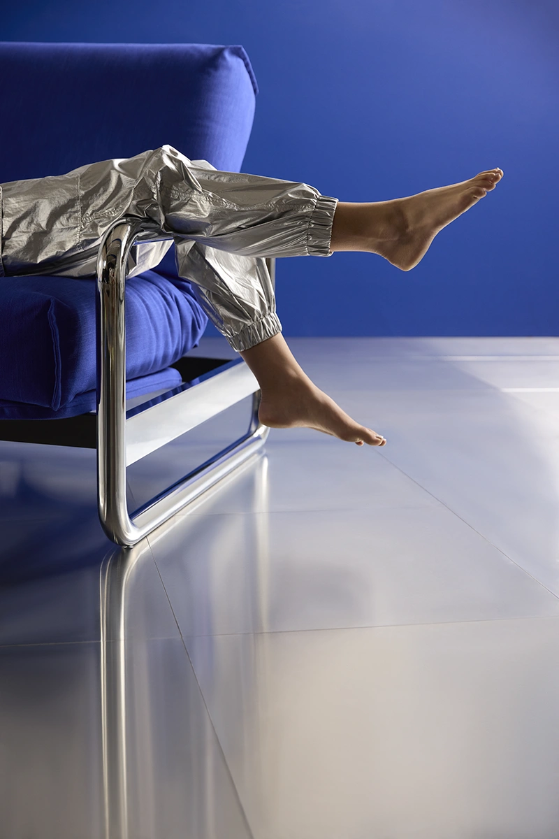Lomira består av en ram i stål och ribbor i björkträ med kromade armstöd, ovanpå ramen lägger man en handgjord resårmadrass. Alla delar på soffan är utbytbara om de skulle bli utslitna. Lomira kan skräddarsys efter dina behov. Soffan har en smart lösning som gör att den går att fälla i sidan så att den blir en bekväm liggplats med nackstöd.