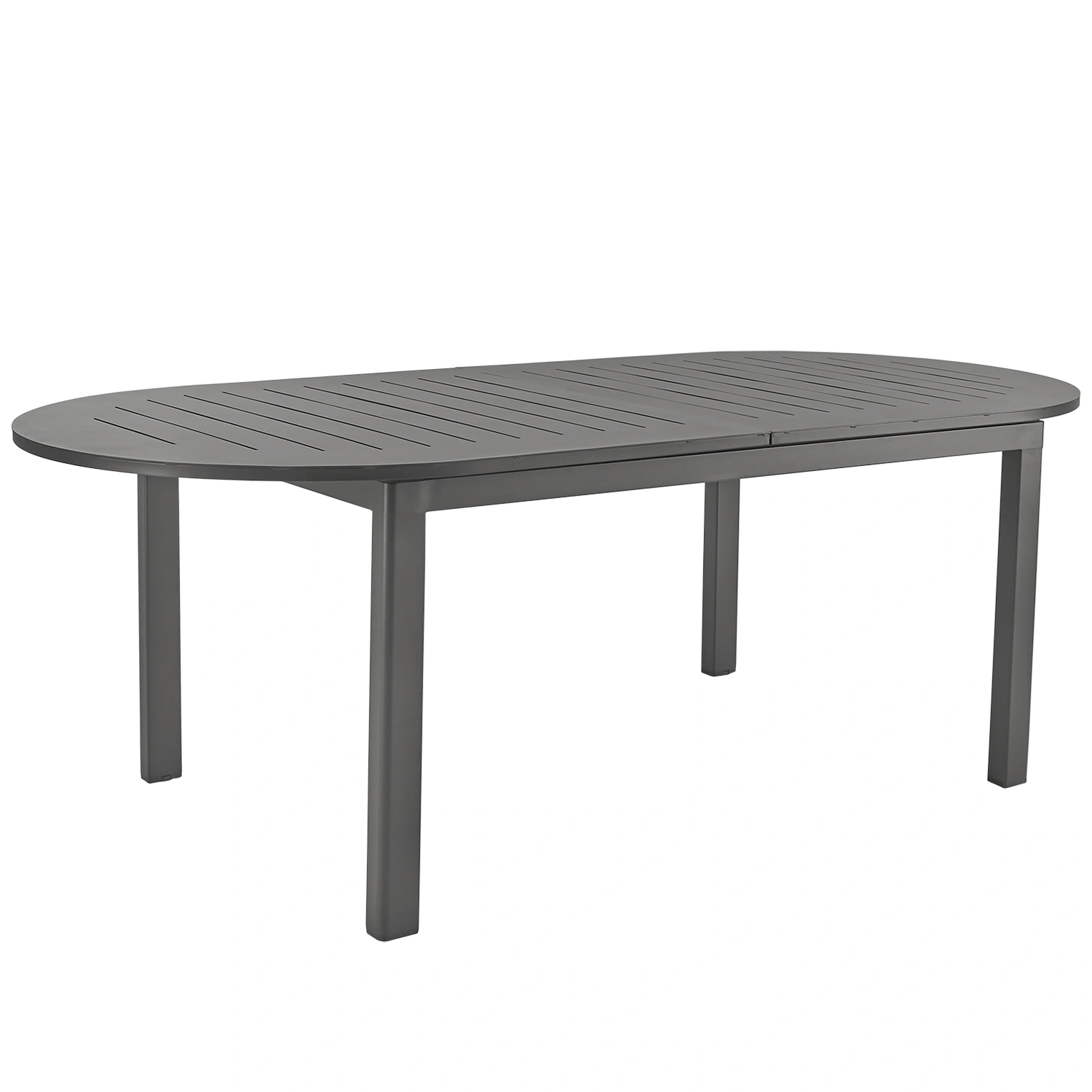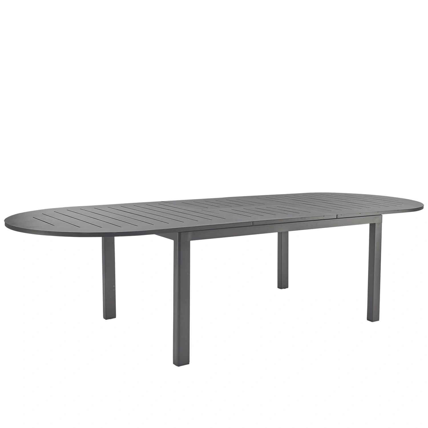 Lomma ovalt förlängningsbord i aluminium i färgen antracit. Lomma Elipse bygger vidare på de bästa egenskaperna hos den populära standardmodellen med sina rundade hörn.