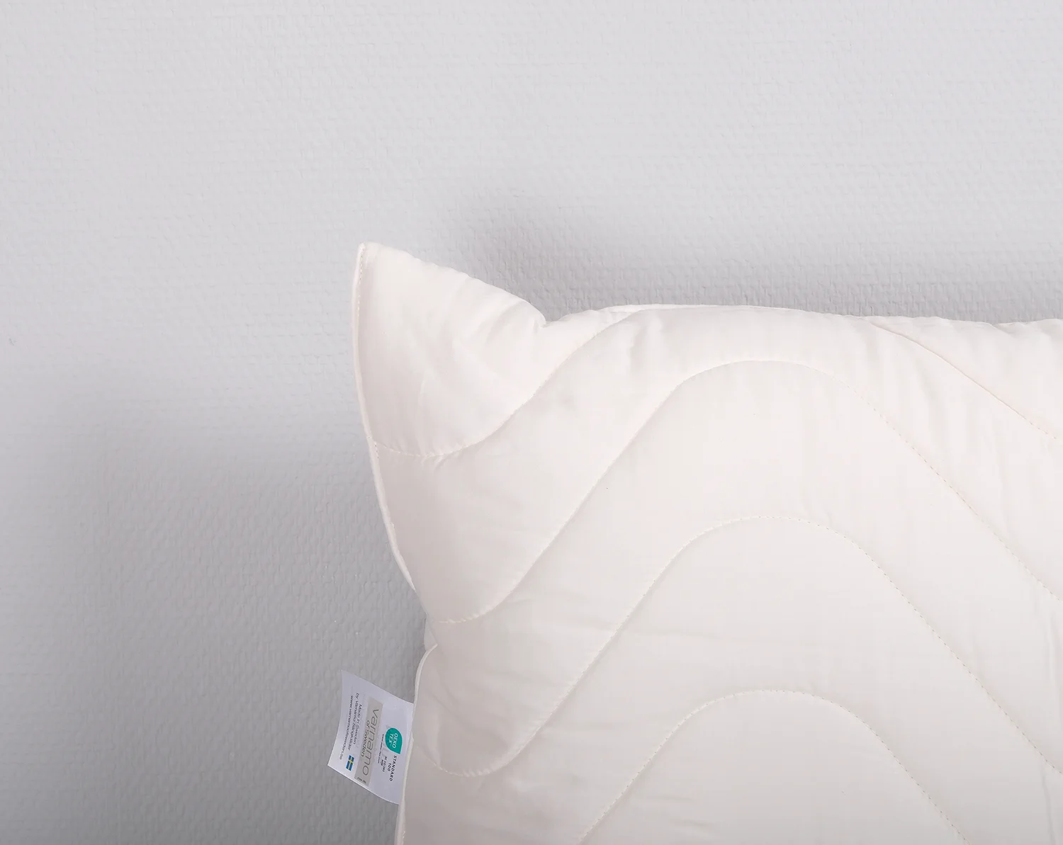 Ullkudde av mycket hög kvalitet med satinöverdrag. Vår fina ullkudde är gjord av satintyg i Lyocell med en trådtäthet på 300 TC.