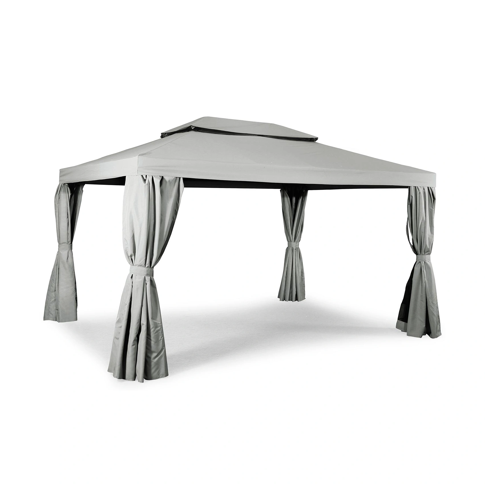Paviljong Luxor i mörkgrå metallstomme samt tak och väggar i ljusgrå polyester, tygvikt 220 gram.