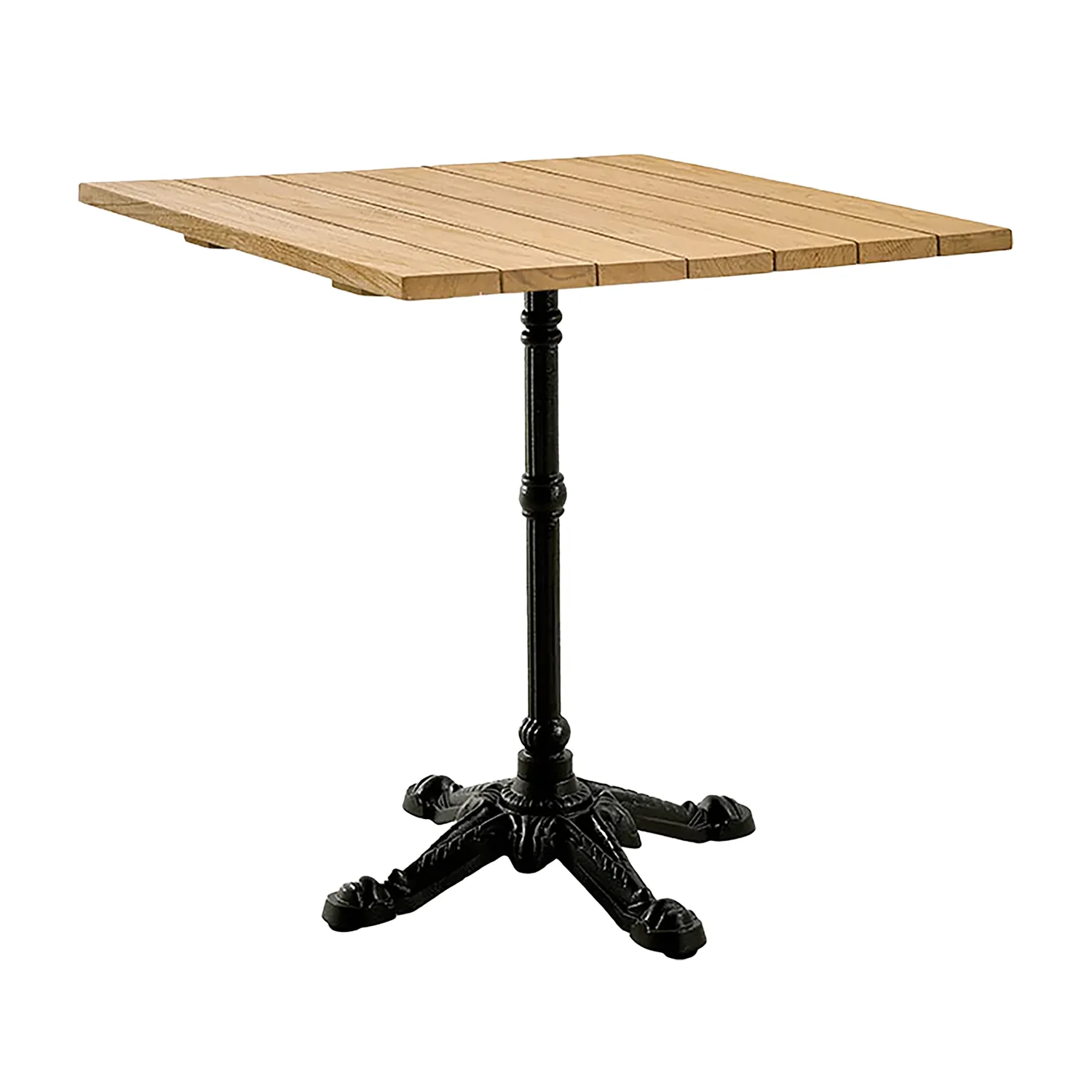 Bordsunderredet är tillverkat av pulverlackerat gjutjärn och bordsskivan av teak som är känt för sin höga hållfasthet och vackra lyster. På grund av den naturliga oljehalten i teakträet är Sika-Designs teakprodukter mycket hållbara, motståndskraftiga mot vind och väder och angrips inte av insekter och röta.