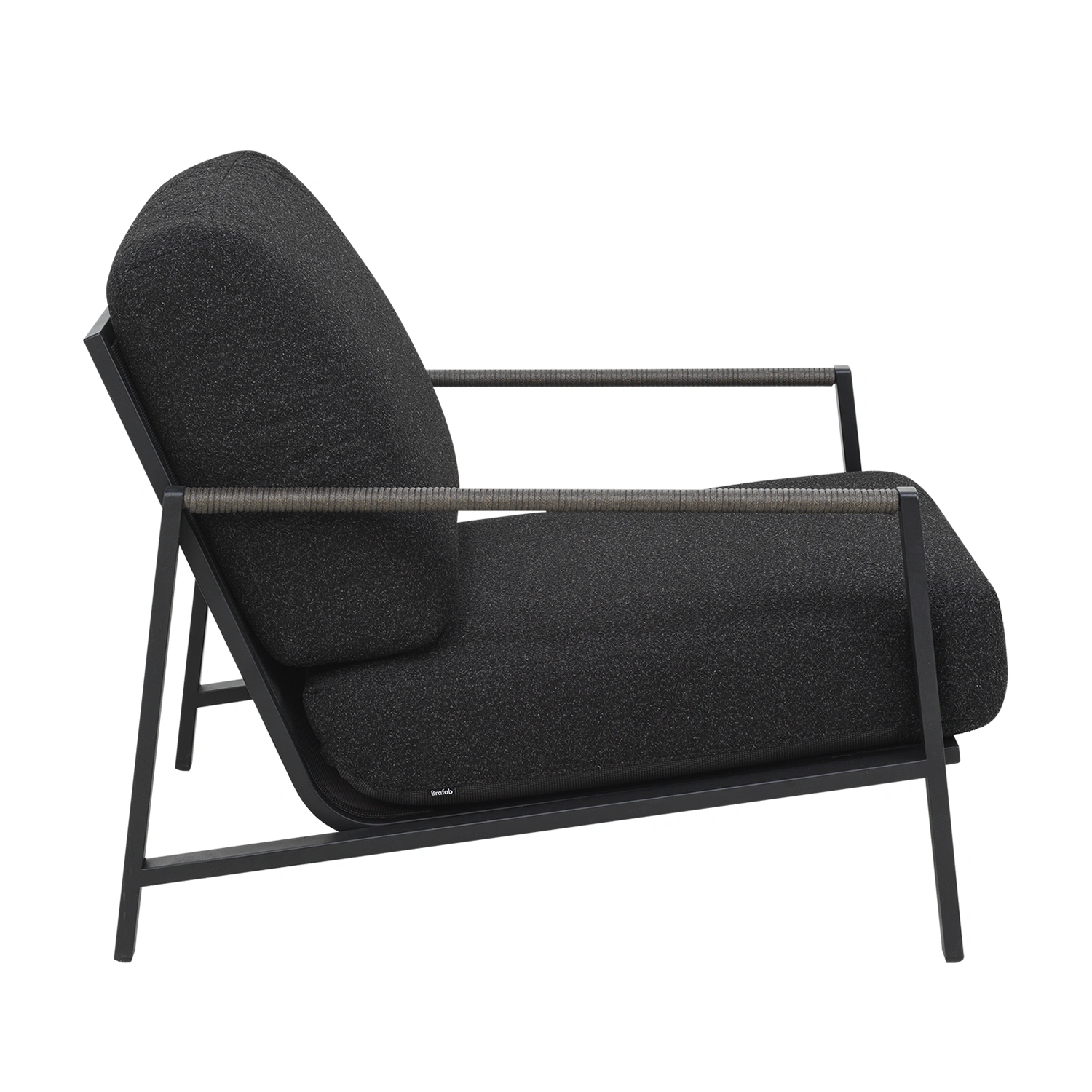 Lyra är en modern och mycket sober serie i en härlig blandning av material. Stommen är tillverkad i svart pulverlackerat rostfritt stål (304), vilket ger hög motståndskraft mot väder och vind. Vackra detaljer i konstrotting på armstöden ger serien en exklusiv och varm känsla.