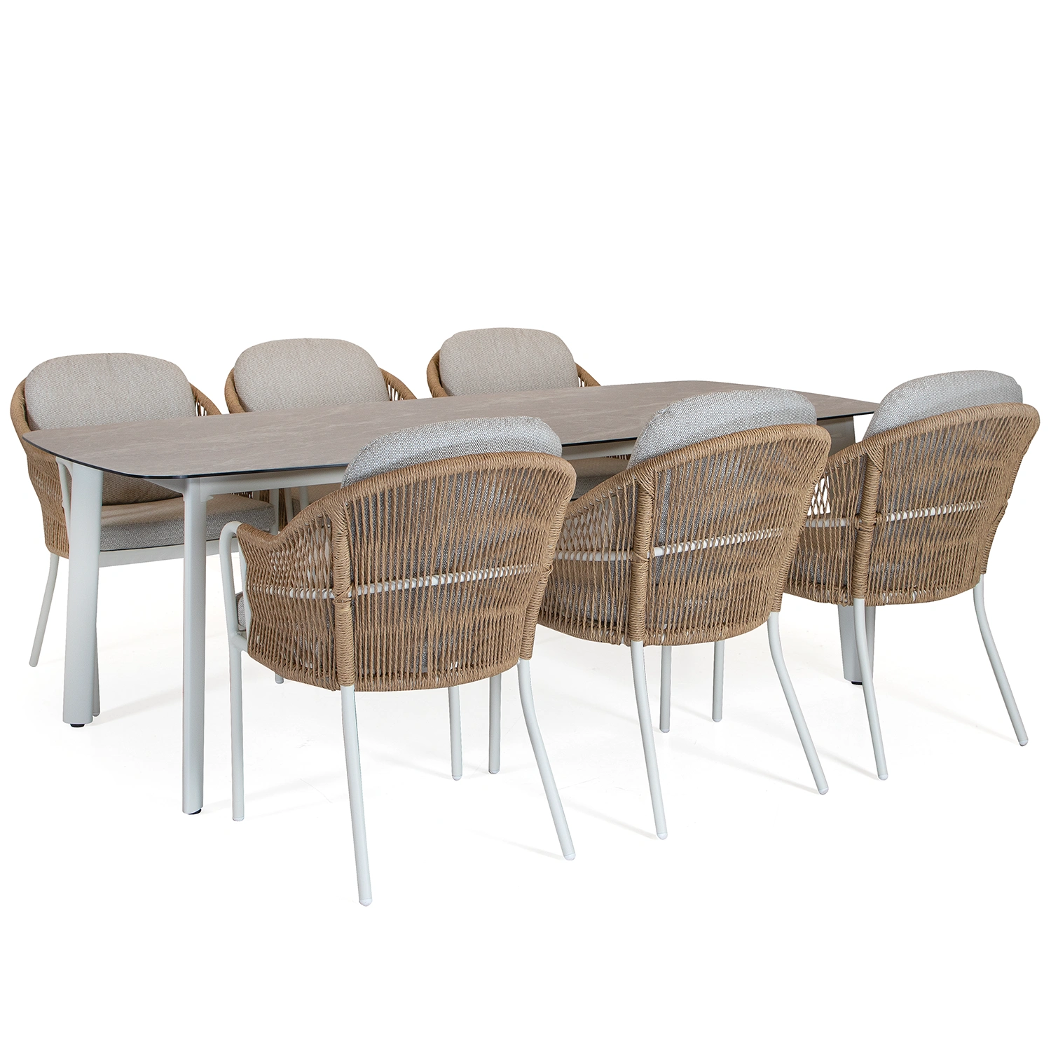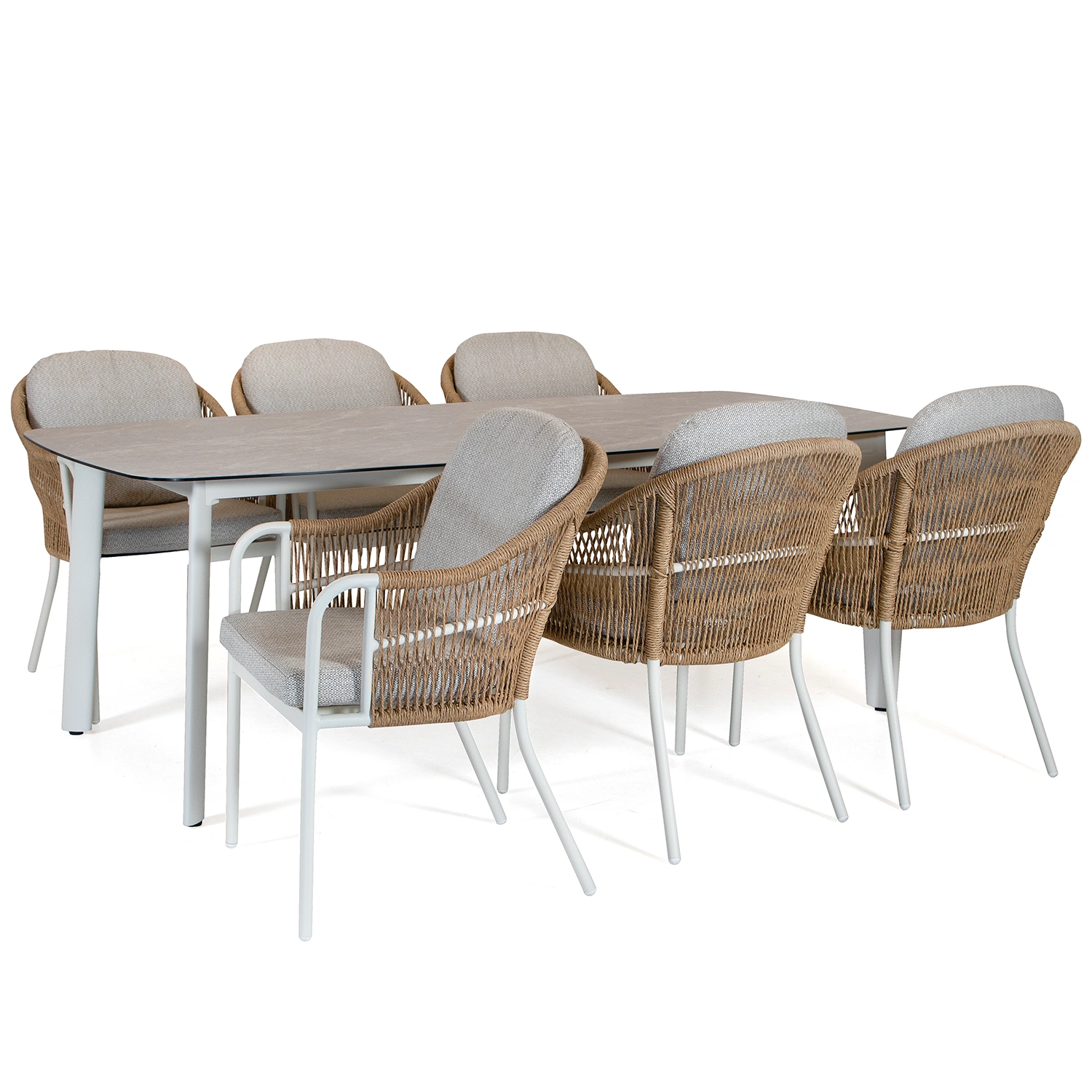 Olivia/Malton matgrupp cream/greige - 6 stolar - 220x100 cm