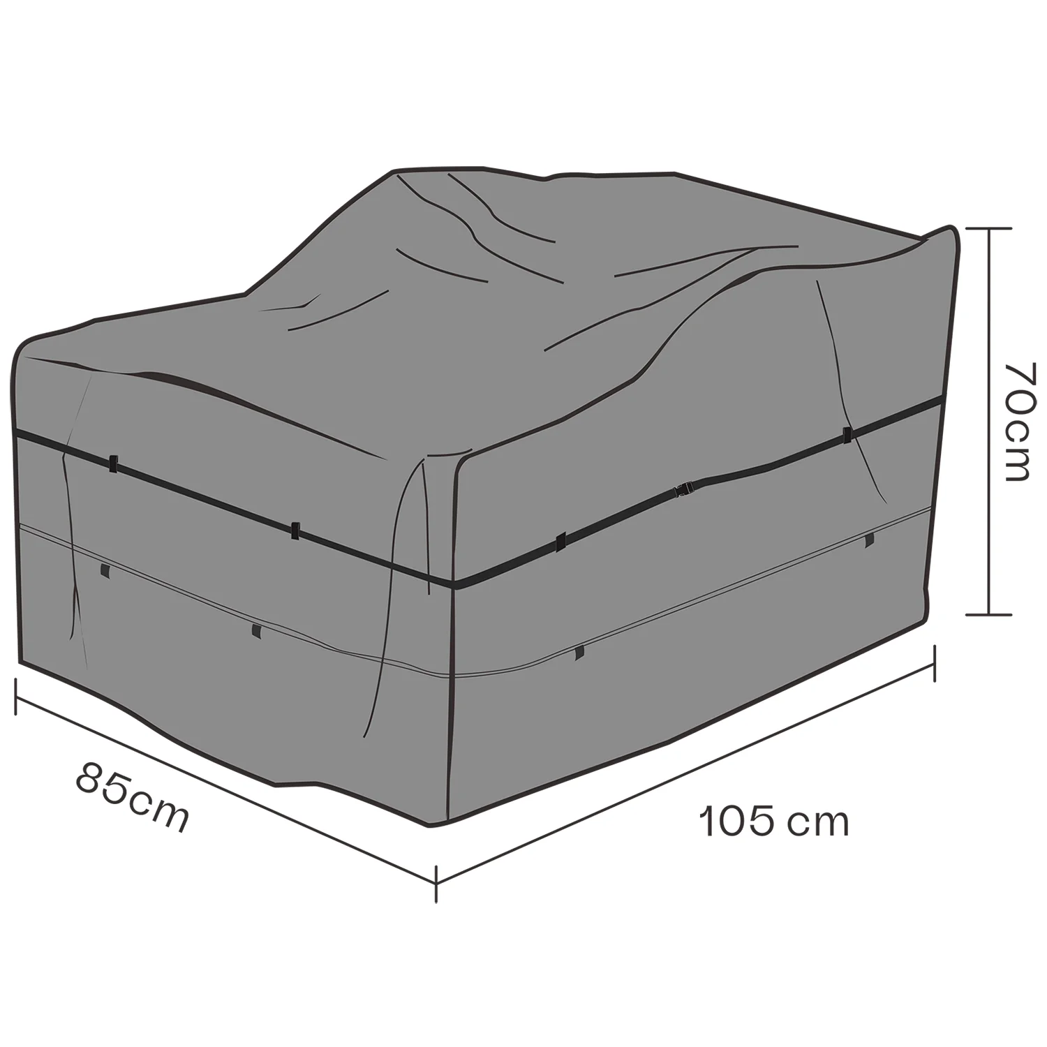Det lätta materialet som används är en vattentät ripstop polyester (210D) med en baksida av TPU beläggning som gör att det andas och kan transportera ut fukt och förhindra uppkomsten av mögel. Tack vare det lätta och smidiga materialet är det lätt att använda, både när du sätter det på dina utemöbler och när du förvarar det i sin förvaringsväska (som ingår).