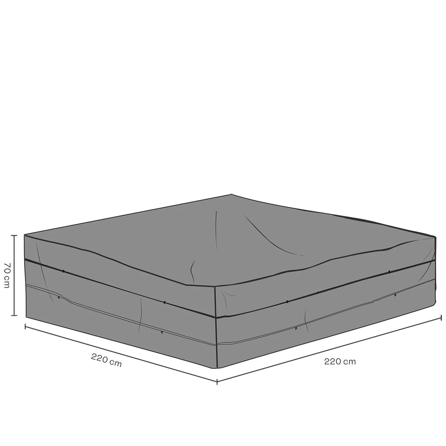 Det lätta materialet som används är en vattentät ripstop polyester (210D) med en baksida av TPU beläggning som gör att det andas och kan transportera ut fukt och förhindra uppkomsten av mögel. Tack vare det lätta och smidiga materialet är det lätt att använda, både när du sätter det på dina utemöbler och när du förvarar det i sin förvaringsväska (som ingår).