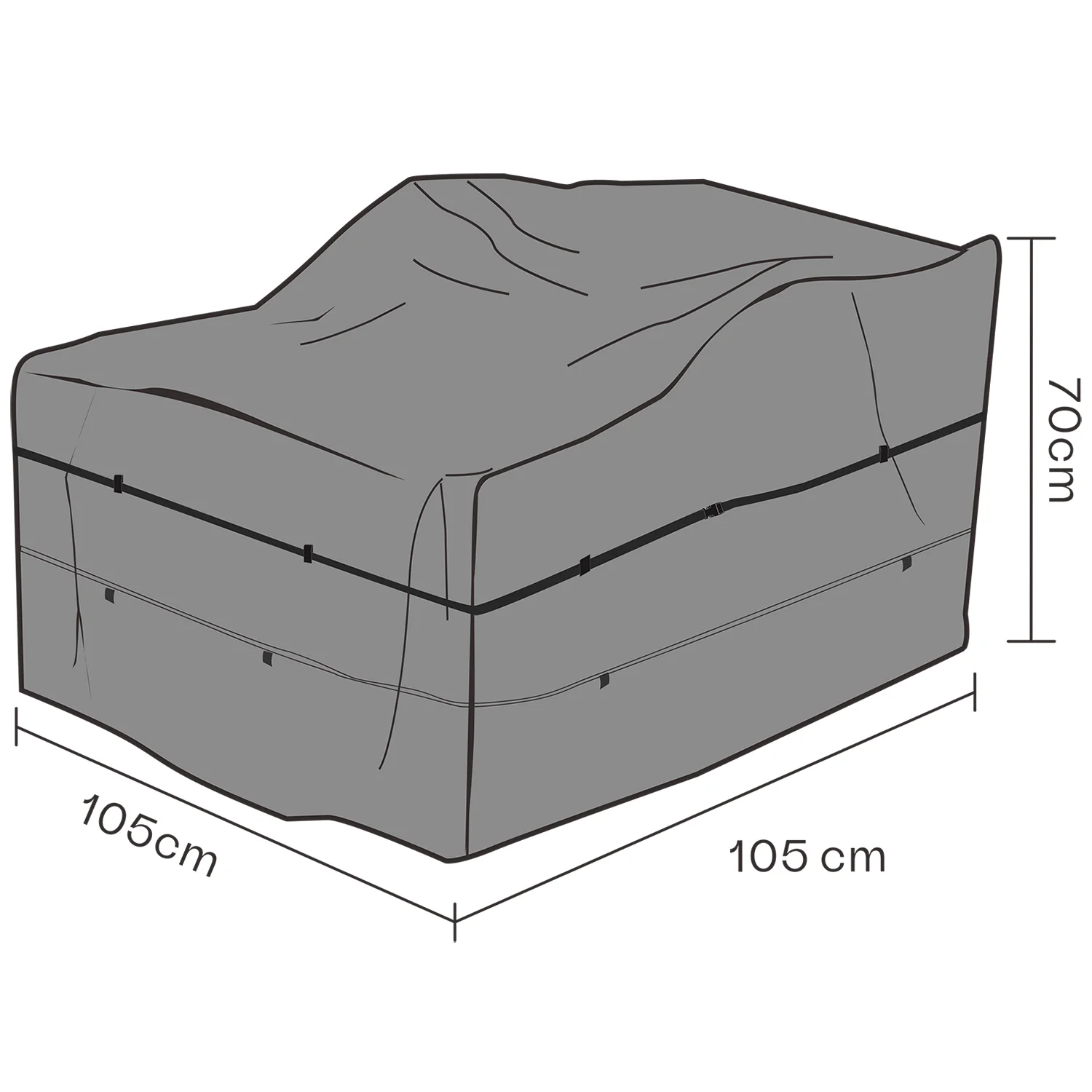 Möbelskydd som är så gott som vattentätt och är gjort av kraftig, PVC-belagd polyester.  Skyddet passar fåtöljer och soffmoduler med ungefärliga mått upp till 105x105xH70 cm.