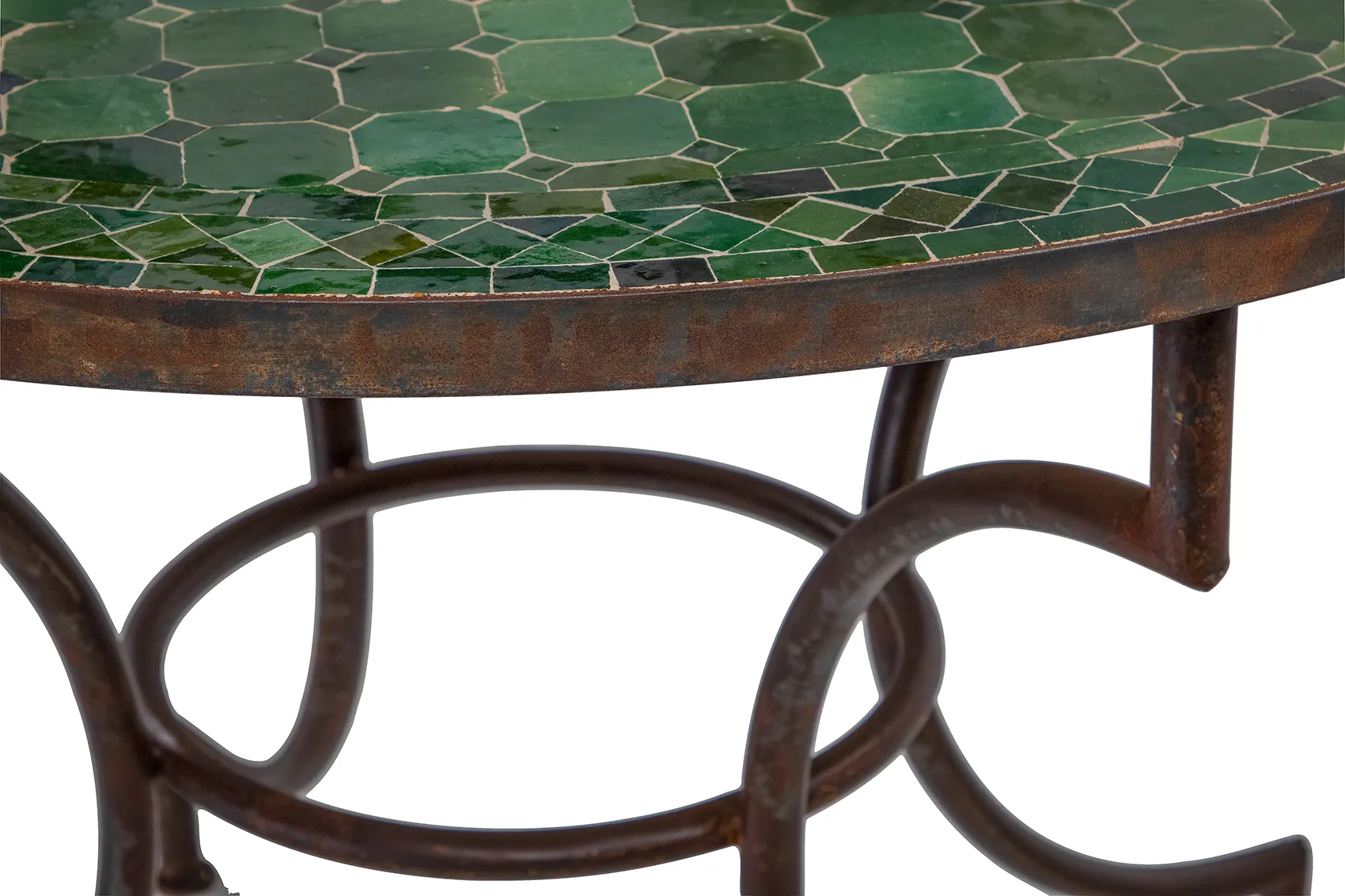 Skapa en inbjudande och charmig cafékänsla hemma med detta vackra mosaikbord i grönt. Bordet har en rund, gjuten mosaikskiva med dekorativt mönster som ger varje exemplar en unik karaktär.
