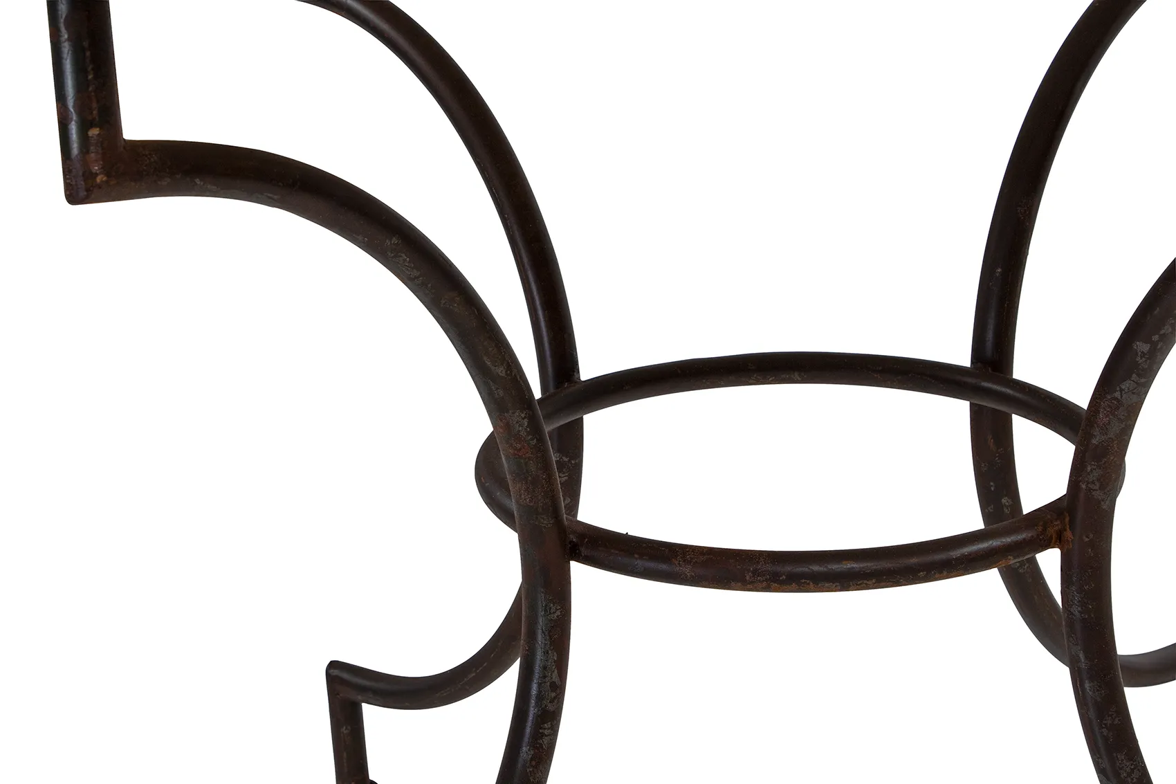 Stativet är tillverkat av lackat stål med en medvetet rustik finish där synlig rost ger bordet en genuin vintagekänsla. Eftersom stålet inte är rostskyddat kommer ytan fortsätta utveckla rost över tid – särskilt i fuktiga miljöer eller vid utomhusbruk. Vill du bevara det befintliga utseendet rekommenderas att stativet lackas med en klar metallack.