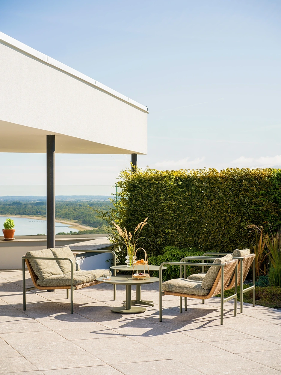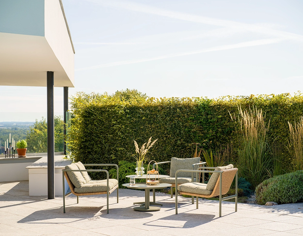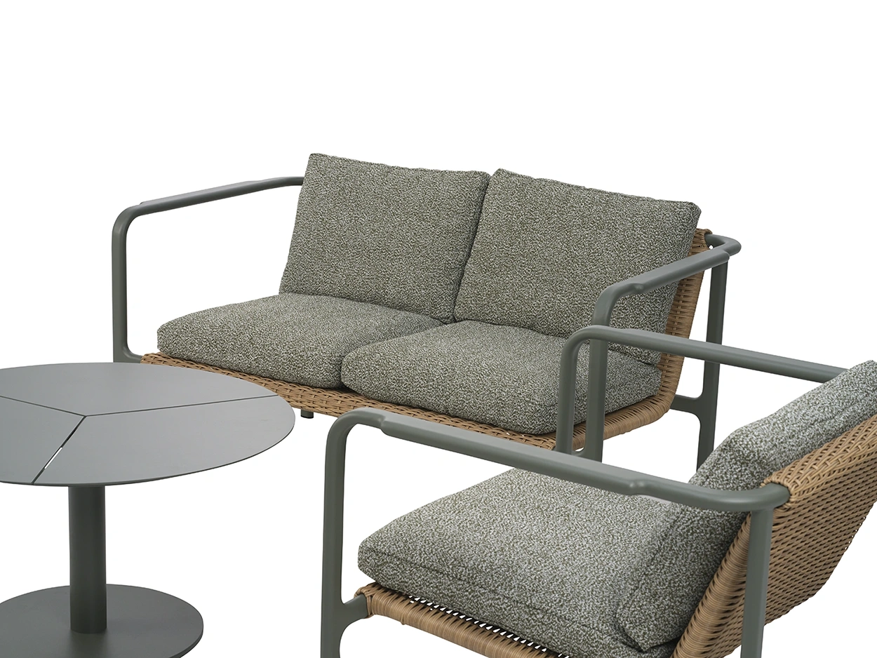Mjuka former och en naturligt inspirerad rottinglook ger Motty både komfort och stil. Serien finns i olika färger på stommen och dynor. Den pulverlackerade stommen har mjuka övergångar vid fogar och armstöd, vilket förstärker det eleganta uttrycket. Dynor i mjukt Teddy-tyg fulländar känslan och gör Motty lika inbjudande som bekväm.