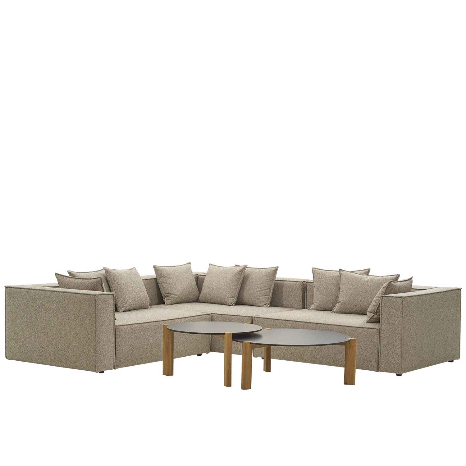 Bygg din egen perfekta Muki-grupp. Muki hörnsoffa med Domino soffbord. Soffborden går att välja bort.