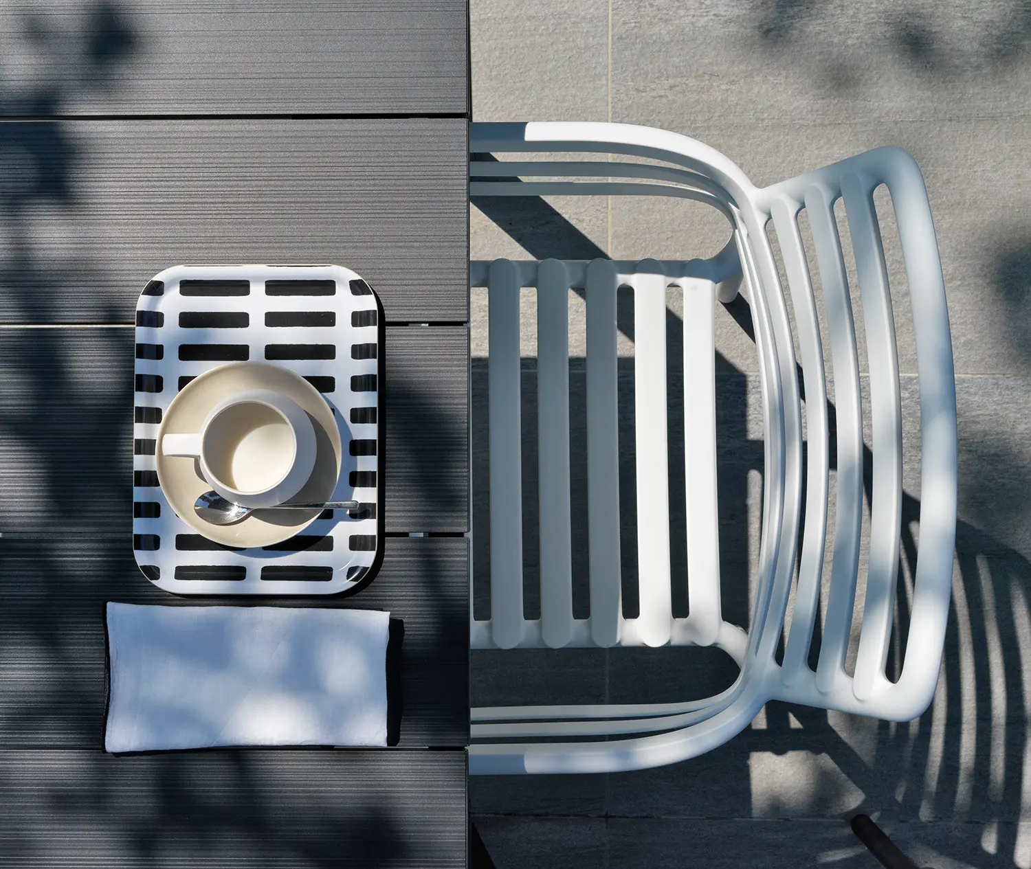 Doga karmstol är en praktisk och stapelbar stol från Italienska Nardi. Designen med lameller ger stolen ett elegant och modernt utseende.