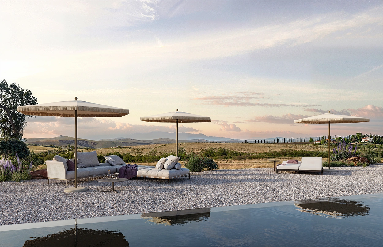 Det som gör Umbrosas parasollfötter unika är deras innovativa konstruktion: istället för att pelaren förs ned i foten, träs parasollet elegant över fotens centrala pelare. Denna smarta lösning skapar en sömlös och stilren helhet där parasoll och fot visuellt blir ett. Resultatet är en minimalistisk, modern och mycket stabil installation – perfekt för både privata och kommersiella utemiljöer.