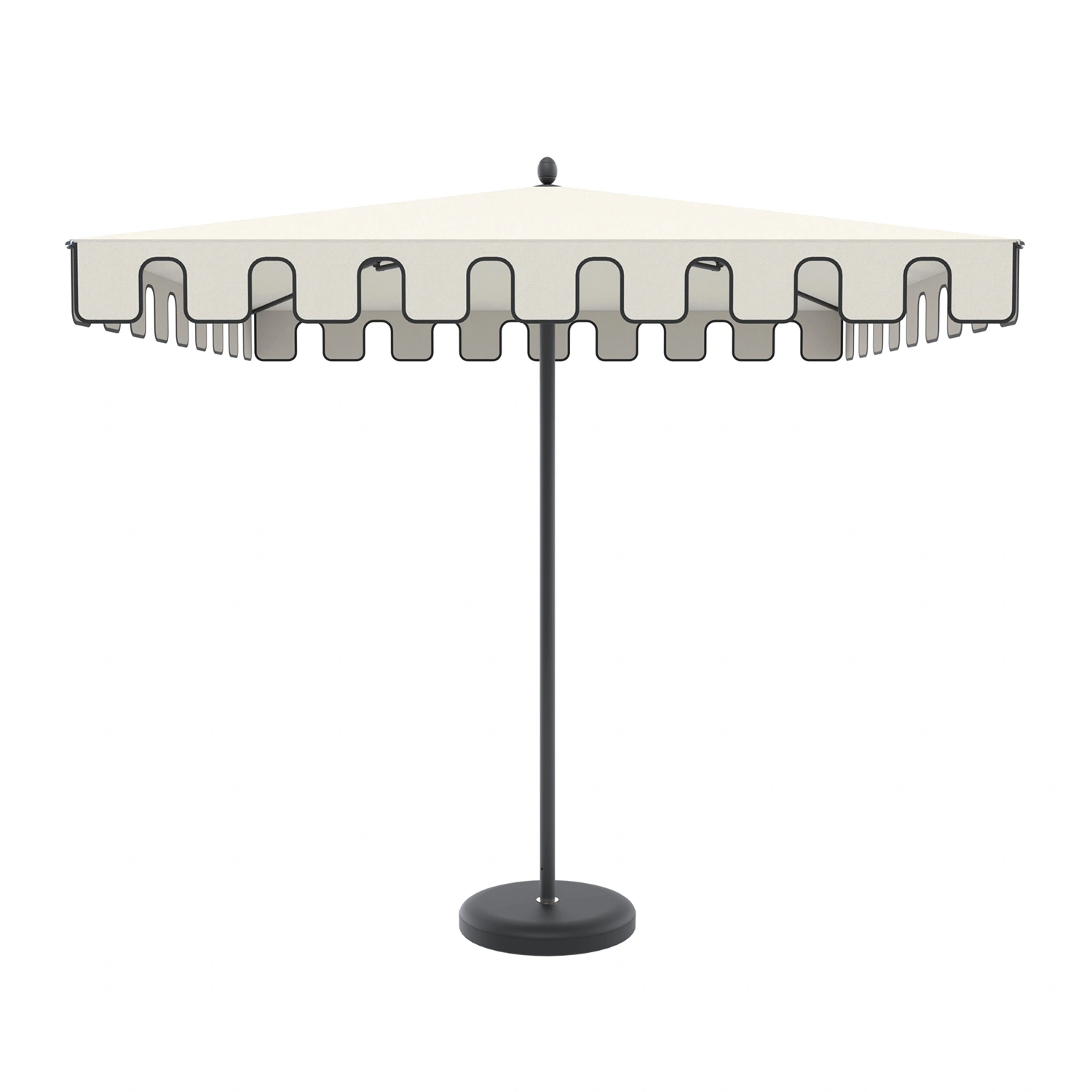 Nata UX Roman i färgen Canvas är ett parasoll som förenar klassisk skönhet med modern design. Den kvadratiska duken på 230×230 cm är klädd i exklusivt Sunbrellatyg i färgen canvas och ramas in av en vågkant, diskret accentuerad med ett sofistikerat dekorband i svart. Resultatet är ett parasoll som omedelbart höjer stämningen i din utomhusmiljö – lika vackert i trädgården som på terrassen eller vid poolen.