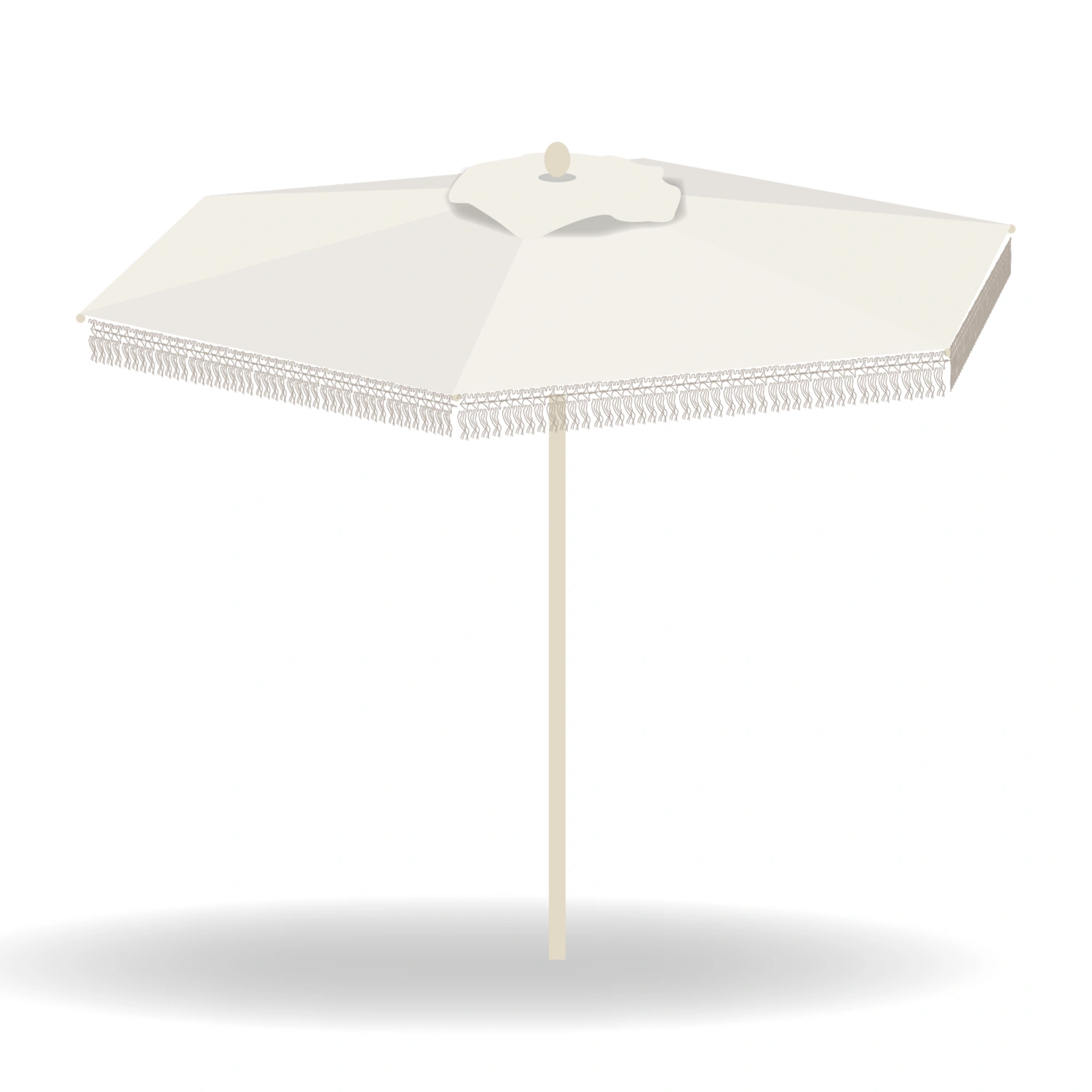 Parasollets stomme är tillverkat i pulverlackerat aluminium i färgen sandstone beige. Parasollets mittstolpe är 50 mm i diameter, med 2 mm tjock aluminum, och ribborna är 20 mm ribbor. Umbrosa använder uteslutande 100% akrylfiber av högsta kvalitet till sina parasolldukar, tillverkade av Dickson (Sunbrella) eller Tuvatextil (Agora). Detta parasoll är i Sunbrella-tyget Canvas. Utmärkt UV‑beständighet, långvarig färgkvalitet och vattenavvisande yta.