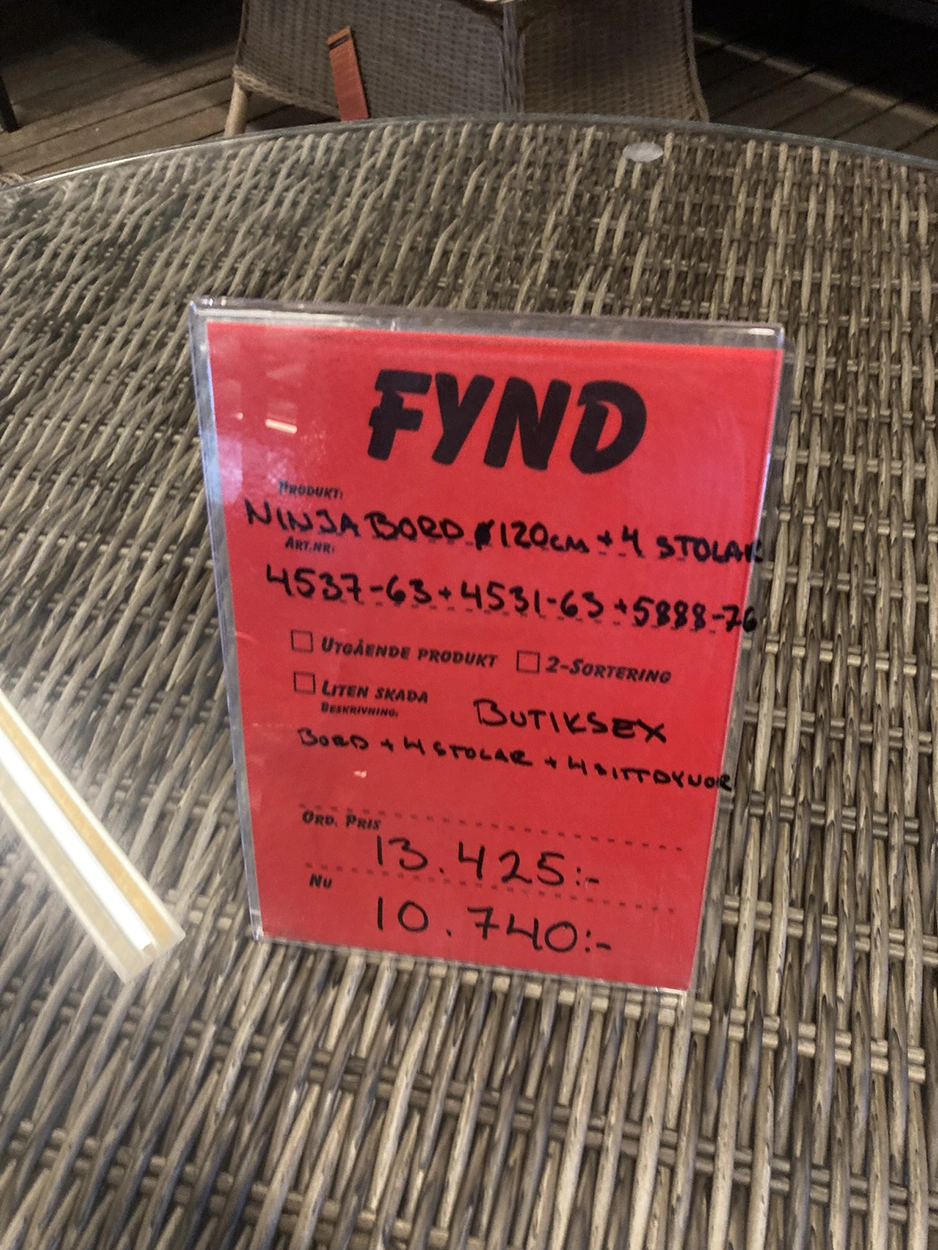 Fraktfritt vid köp över 10 000,- kan inte tillämpas på utställningsmöbler, även i kombination med ordinarie möbler.