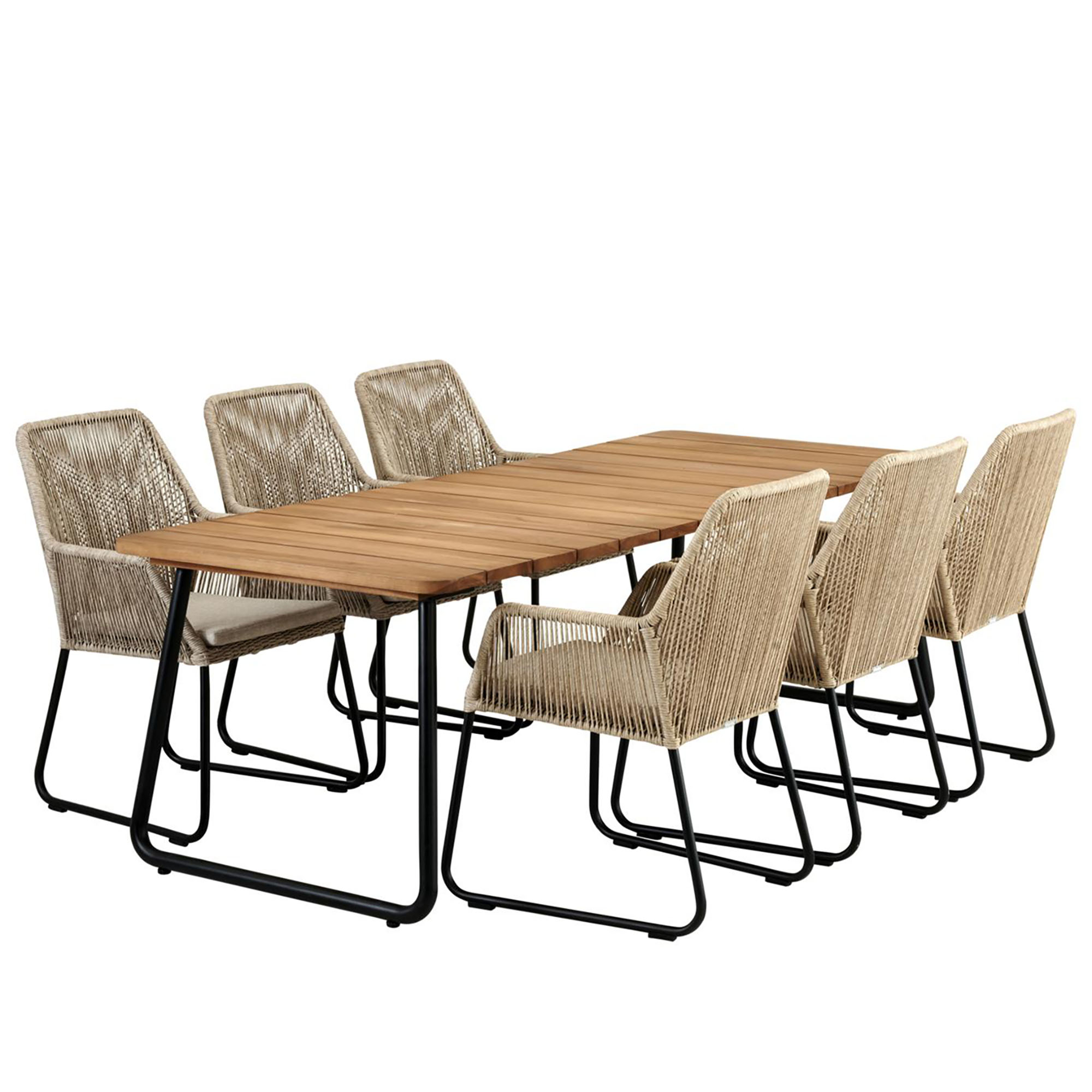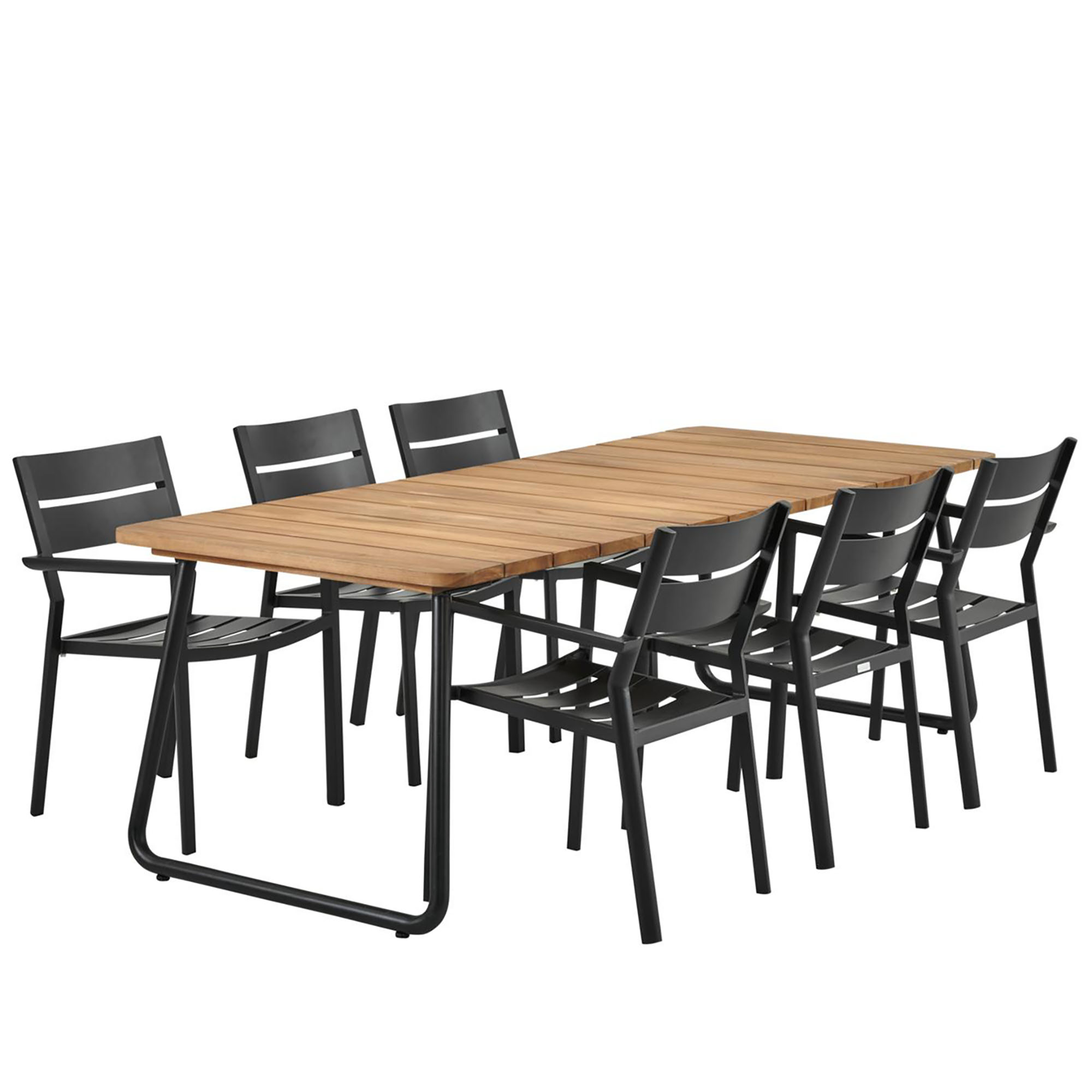Serien Nolli genomsyras av ren, genomtänkt design som gör det enkelt för dig att möblera och kombinera dina favoriter. Med en bordsskiva av breda teakskivor och ben av svartlackat aluminiumrör har du ett rejält bord med ett mjukt, inbjudande intryck.