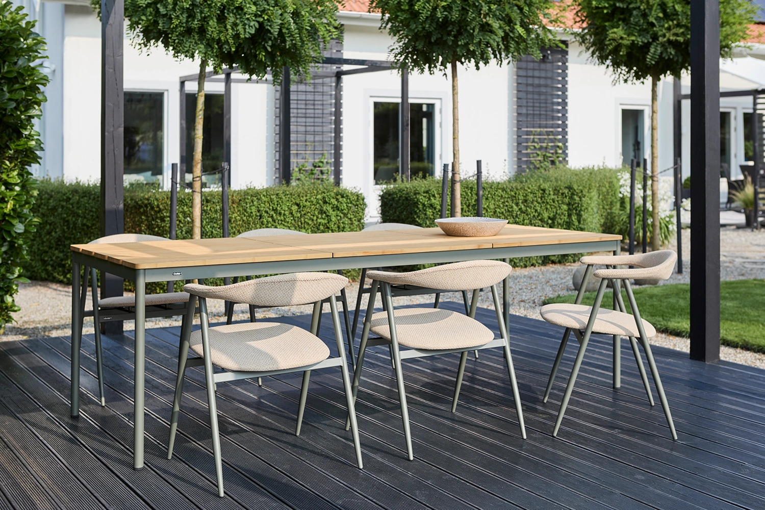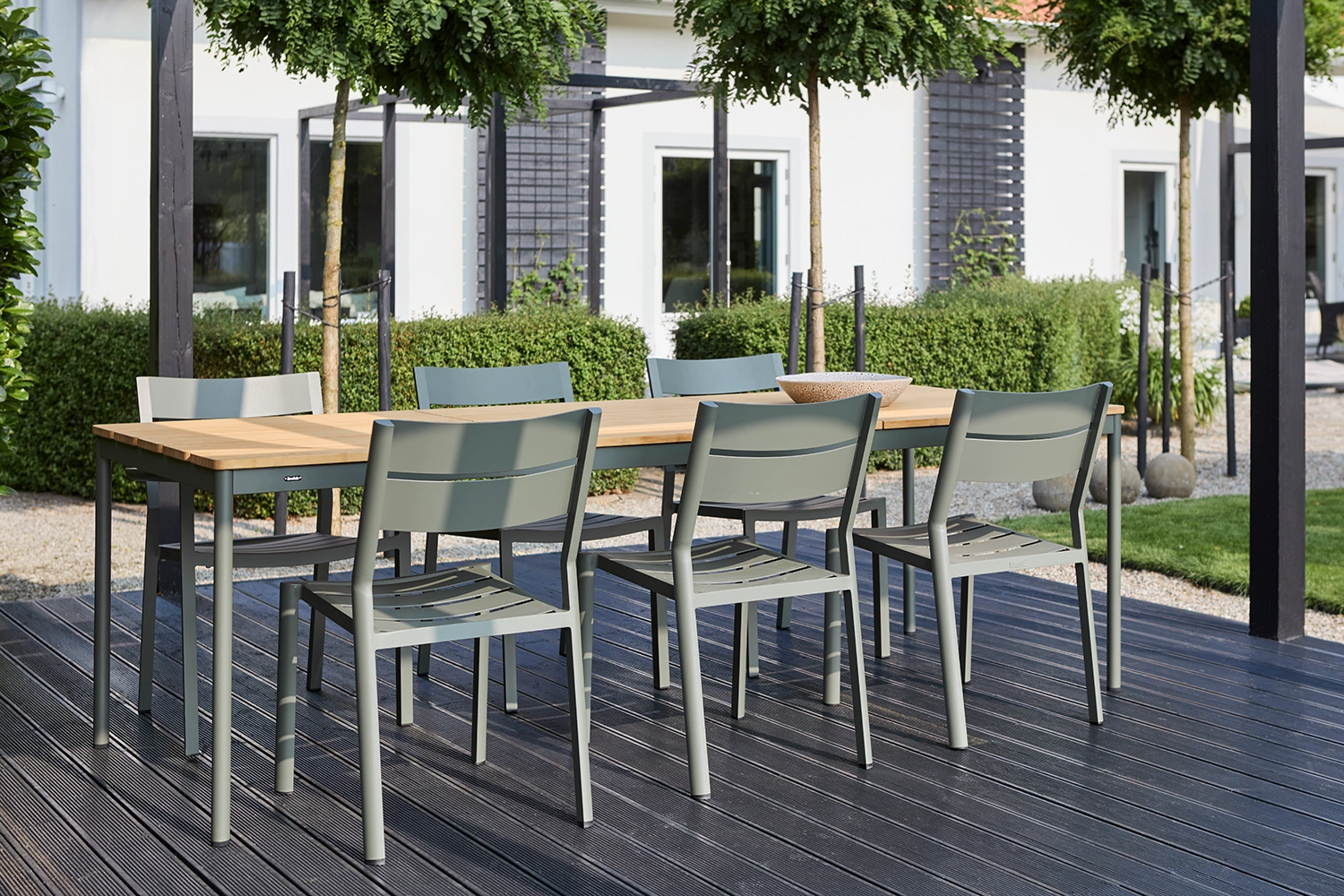 Borden i Nox-serien tillåter dig att skapa ett matbord helt i din smak. Välj antingen ett färdigmonterat bord med bordsskiva i teak eller bambu. Eller välj valfri ram och kombinera med bordsskiva i laminat, antingen i betonglook eller terazzo.