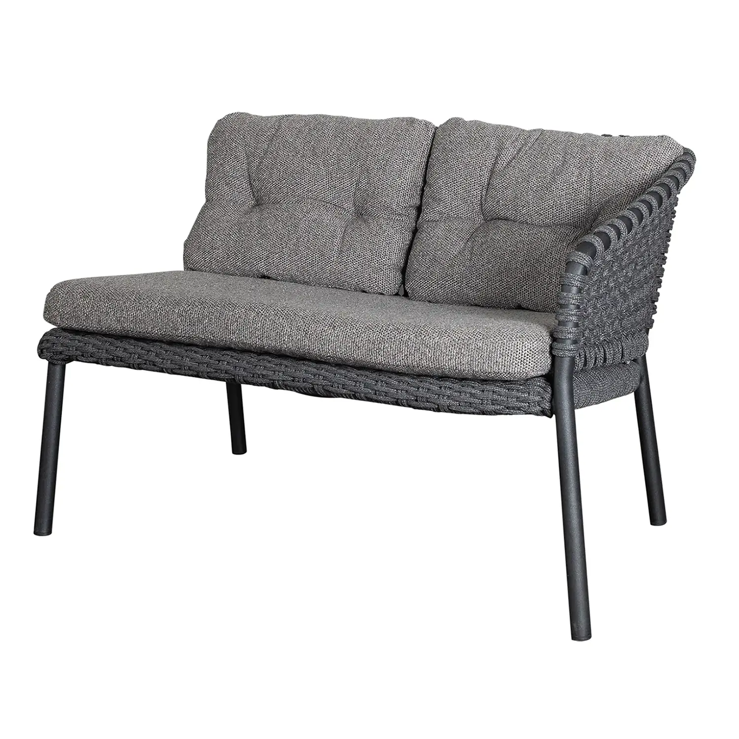 Ocean soffa, vänstermodul, har designats av Cane-lines designteam och är en härlig kombination av modern design och traditionellt hantverk. Modulsoffan Ocean är ett flexibelt loungekoncept som kan sättas ihop och justeras efter önskemål och behov. Det elegant konstruerade loungekonceptet är tillverkat i robust Cane-line Soft Rope på en stadig aluminiumram och har otroligt mjuka och bekväma dynor i Cane-line Wove (polypropen). Ramen och den transparenta looken ger ett väldigt lätt utseende. Modulerna är otroligt lätta att flytta runt, om du önskar en ny layout på ditt loungeområde.