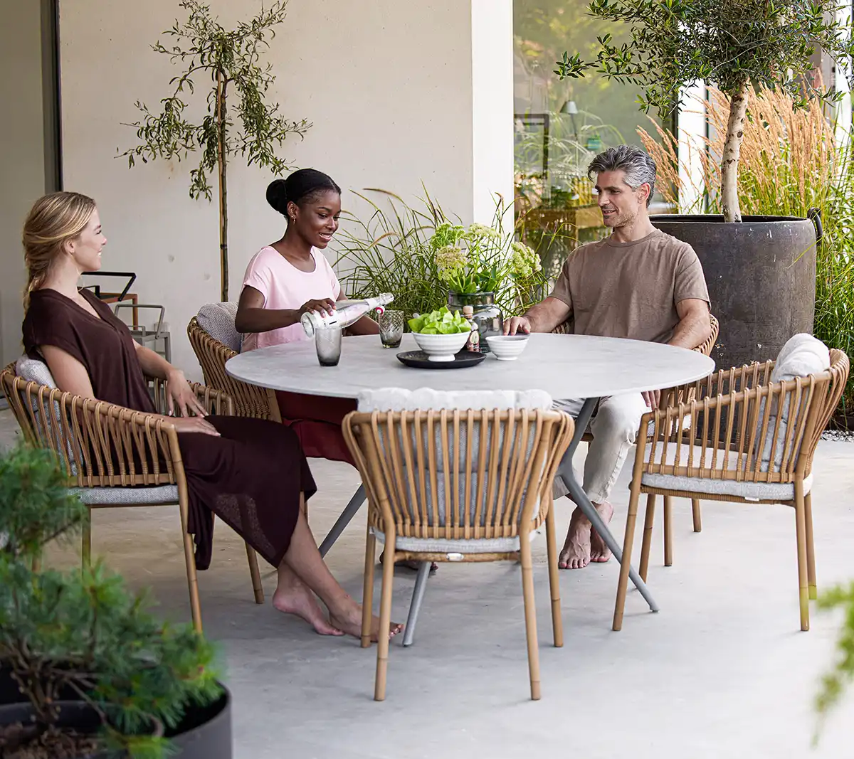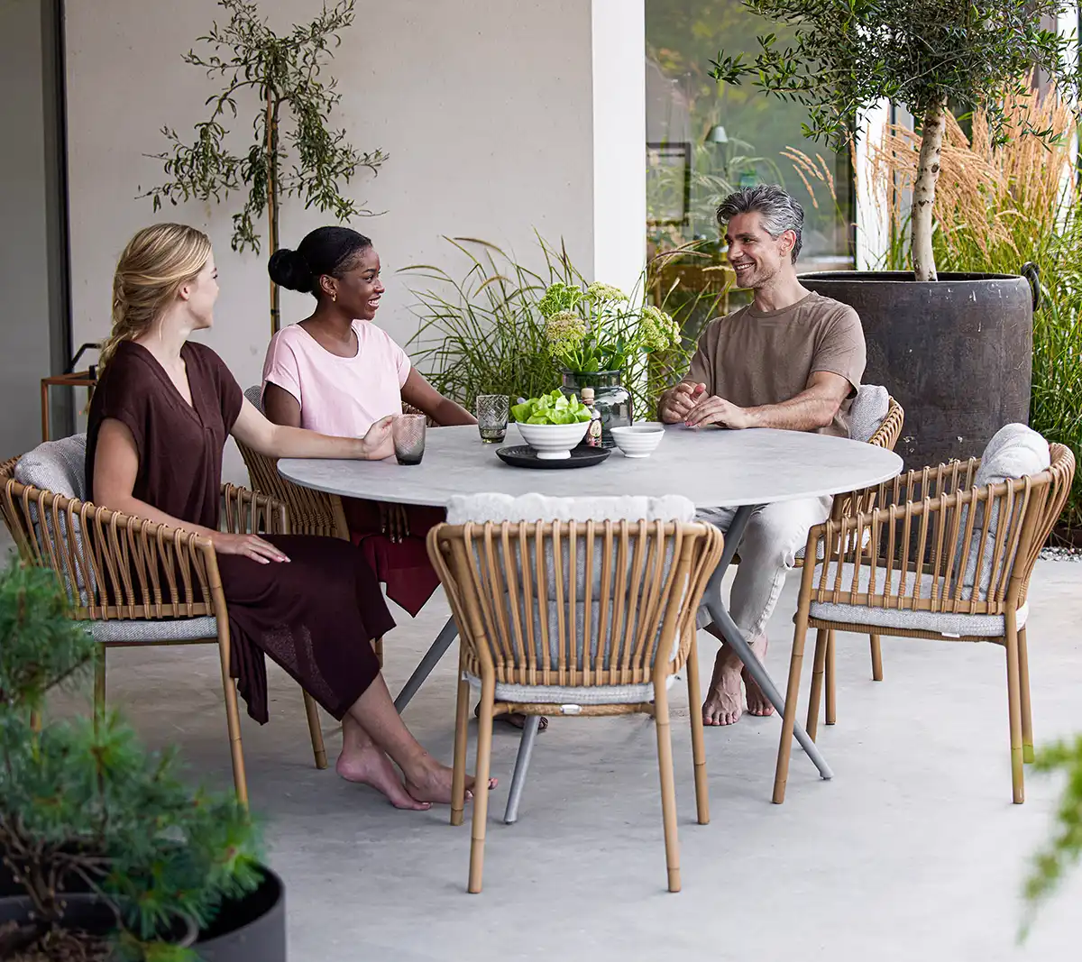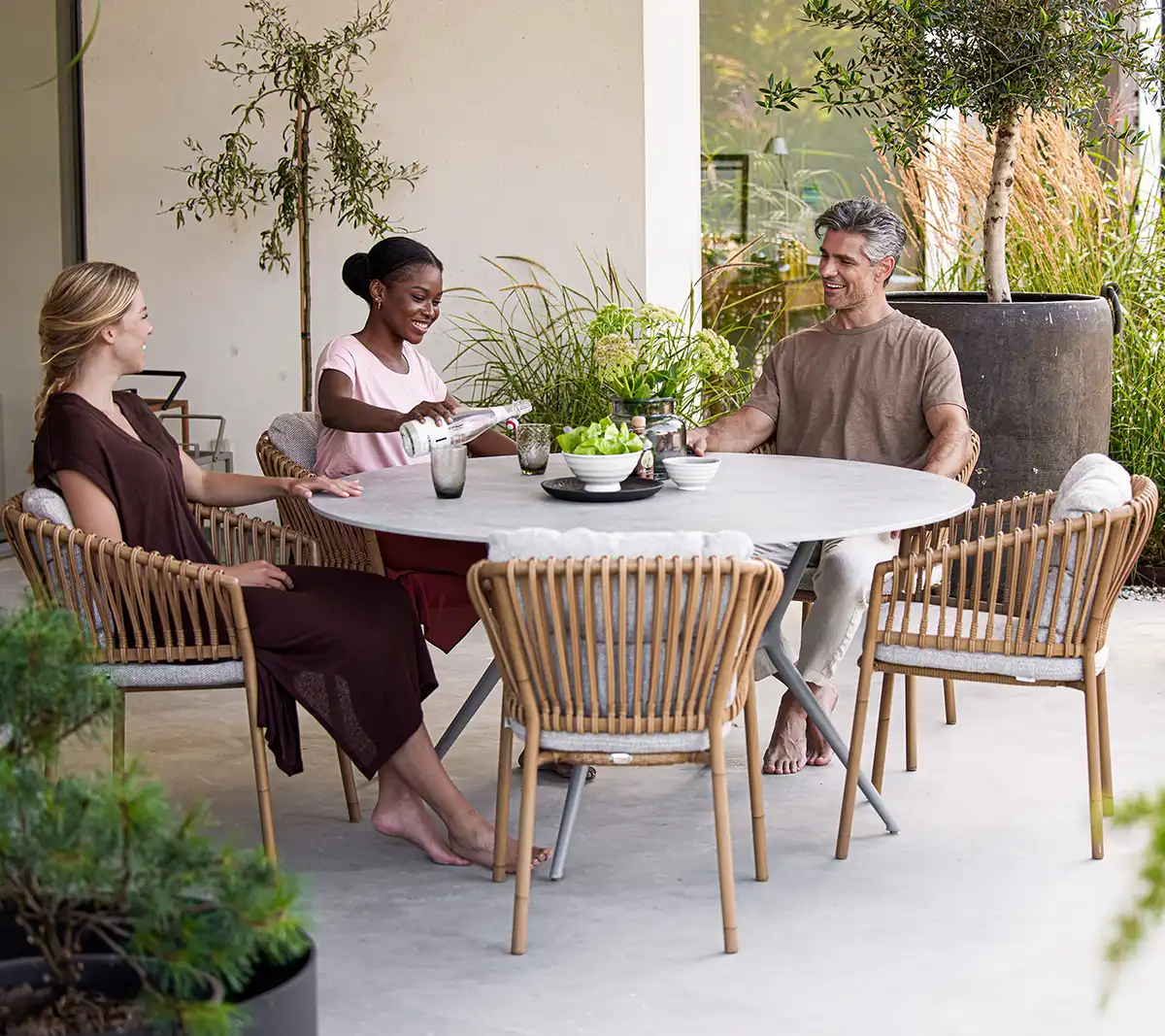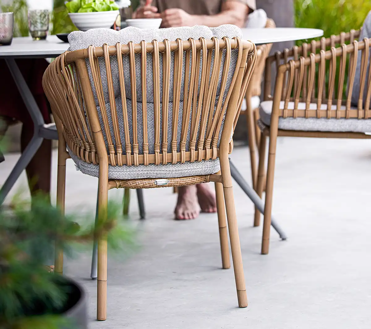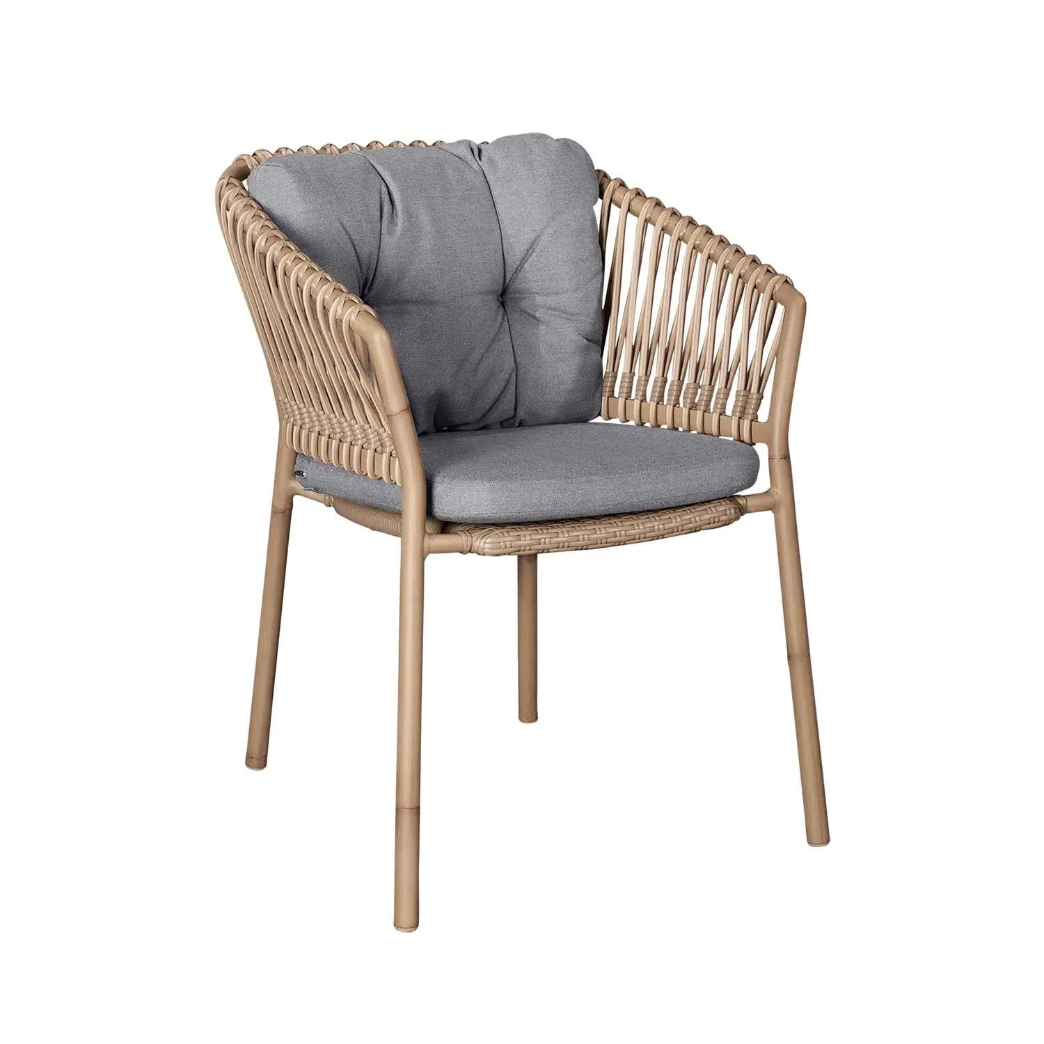 Ocean har designats av Cane-lines designteam och är en kombination av modern design och traditionellt hantverk. Den elegant konstruerade matstolen är tillverkad i väderbeständig och robust Cane-line Weave® på en stadig aluminiumram och har otroligt mjuka och bekväma dynor i Cane-line Natté eller Cane-line Wove. Ramen och den transparenta looken ger ett väldigt lätt utseende, och stolen är även lätt att flytta runt.