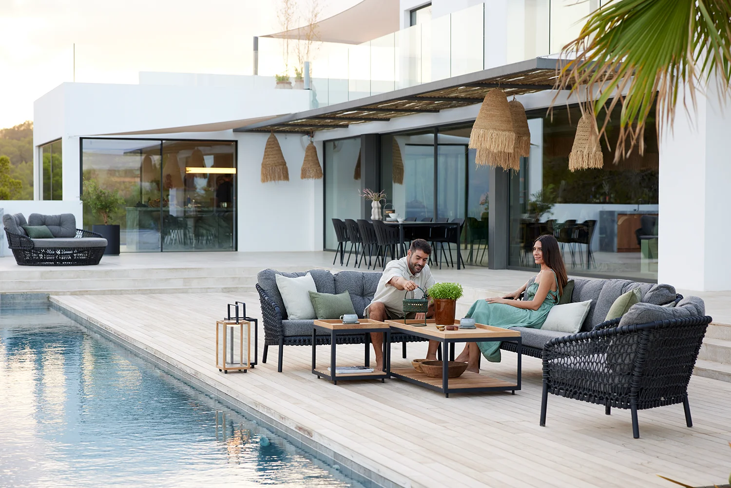 Ocean Large-loungestolen har designats av Cane-line Design och är en härlig kombination av modern design och traditionellt hantverk. En elegant utformad loungestol i slitstarka Cane-line-material på en robust aluminiumram. Cane-line-materialen passar perfekt till utomhusbruk tack vare sina slitstarka och väderbeständiga egenskaper. Loungestolen har bekväma och supermjuka dynor, som ger stolens form ett mjukare uttryck. Dynorna har QuickDry & Airflow-systemet, som säkerställer att de är torra ca 1 timme efter en regnskur.