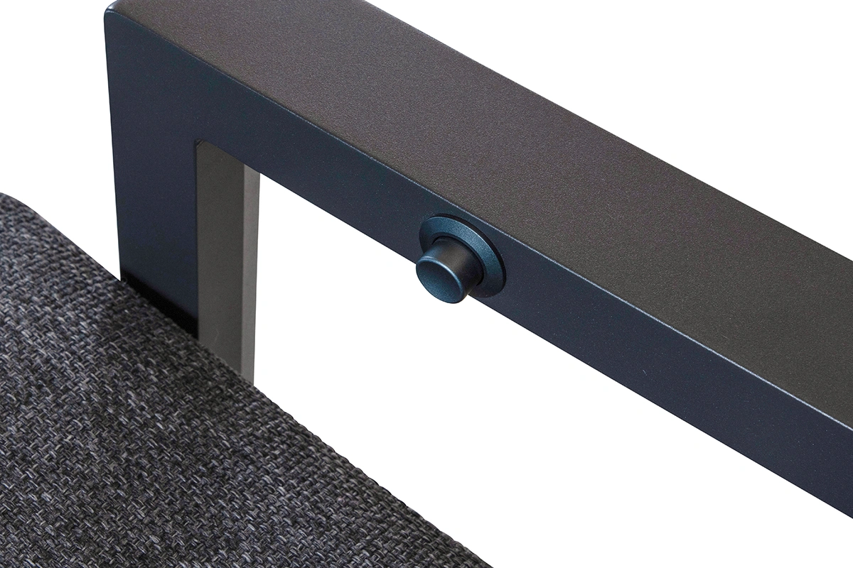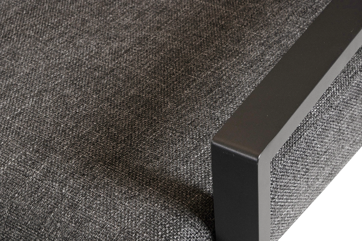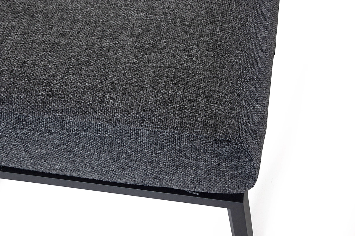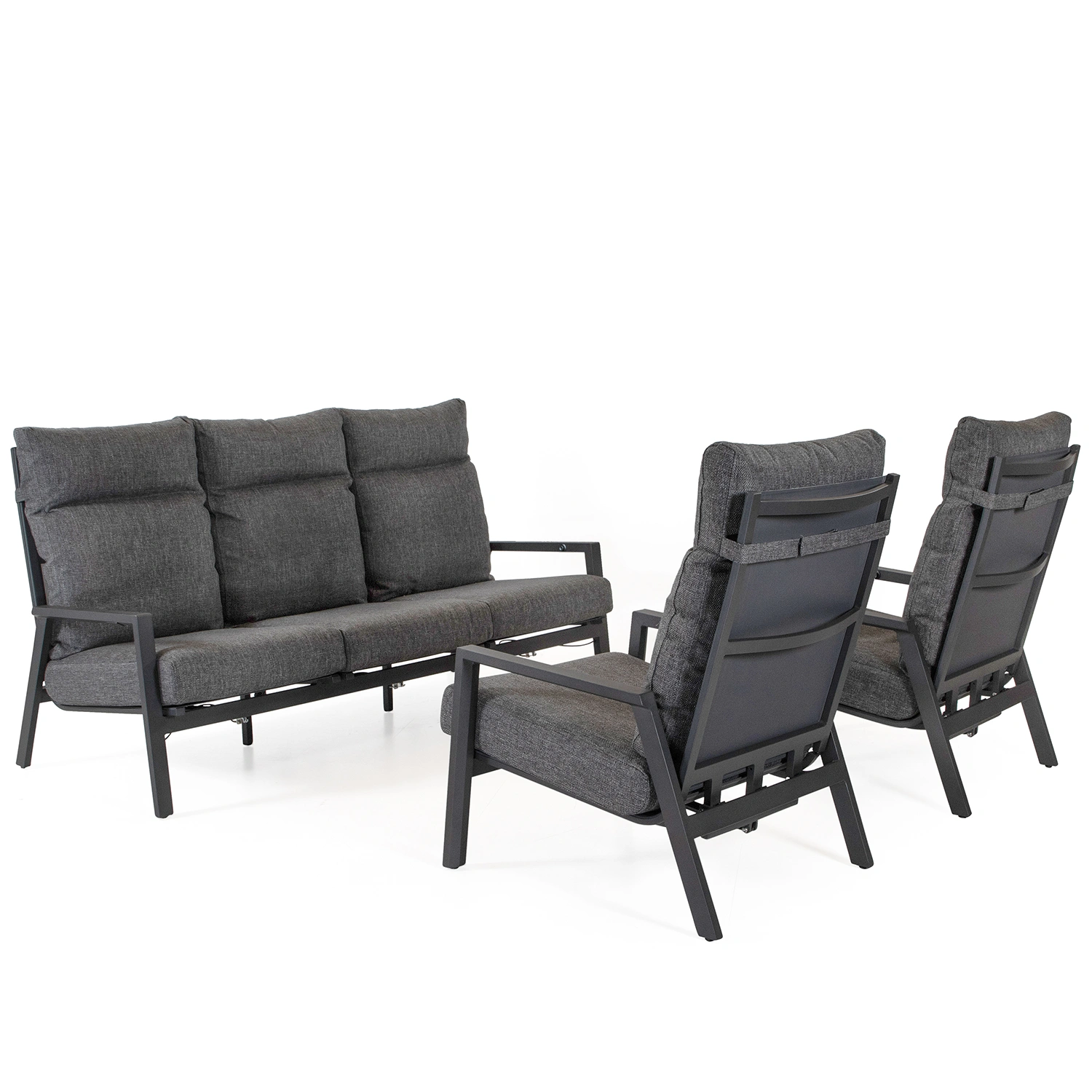 Soffgruppen består av en ställbar 3-sitssoffa, 2 ställbara fåtöljer. Soffan och fåtöljerna har stomme i färgen antracitgrå. Dynorna är mörkgrå allvädersdynor.