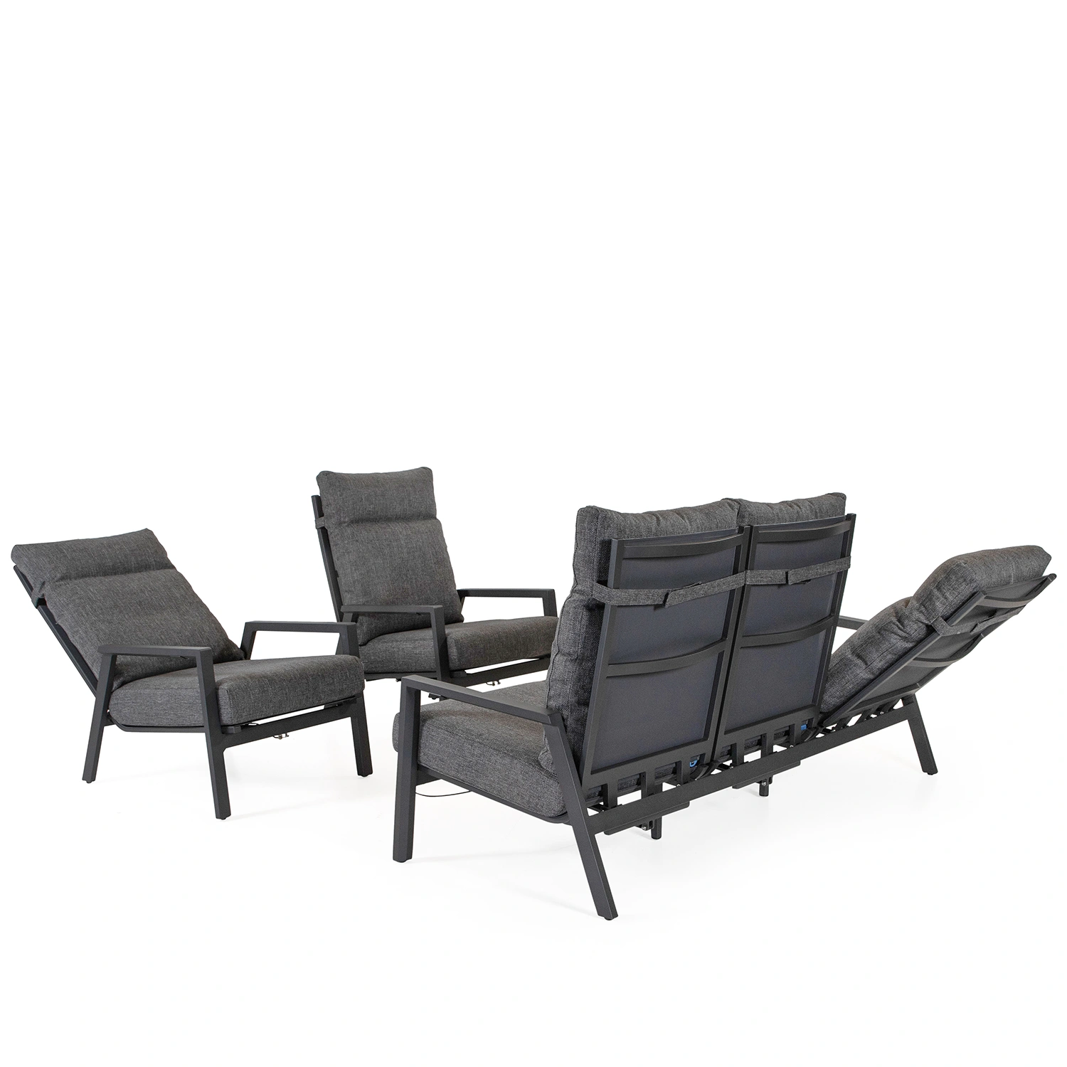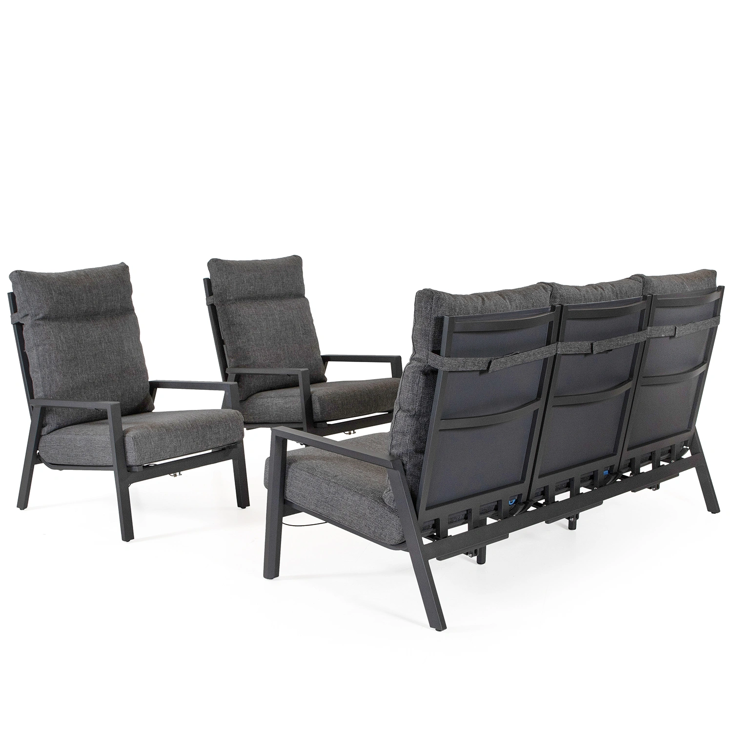 Palau soffgrupp med ställbara fåtöljer och soffa. Både fåtöljer och soffa har ställbara ryggar. Alla tre ryggarna i soffan är individuellt ställbara.