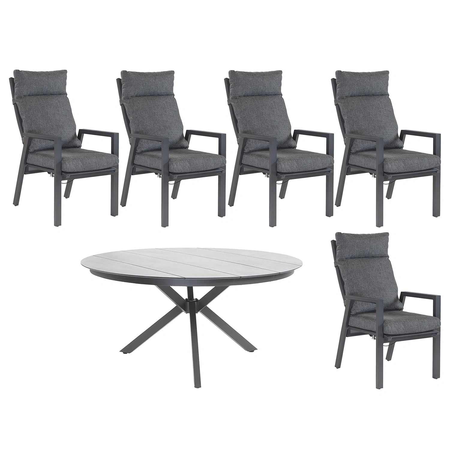 Dallas/York matgrupp mörkgrå - 6 positionsstolar, 220x100 cm