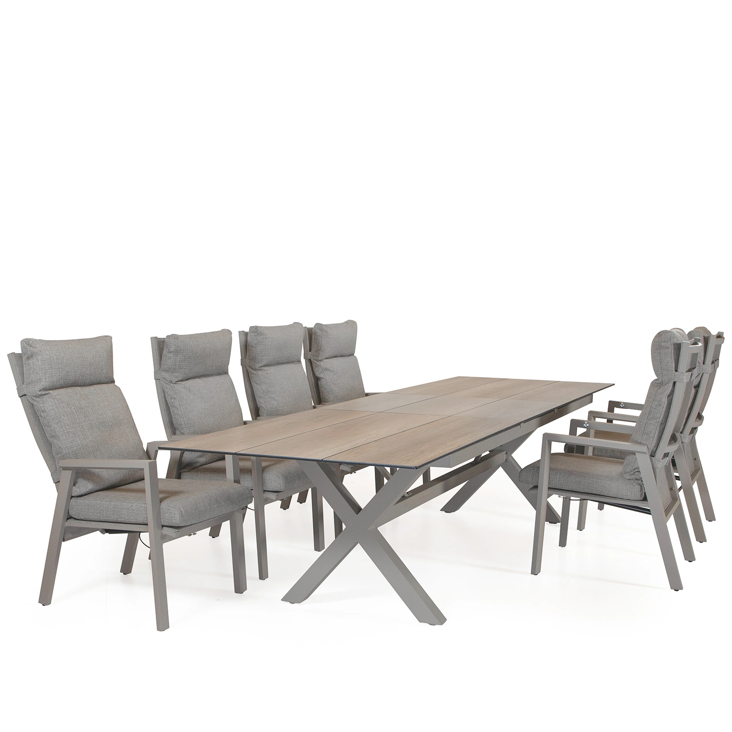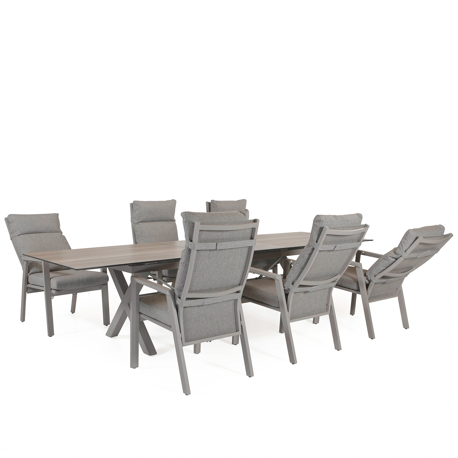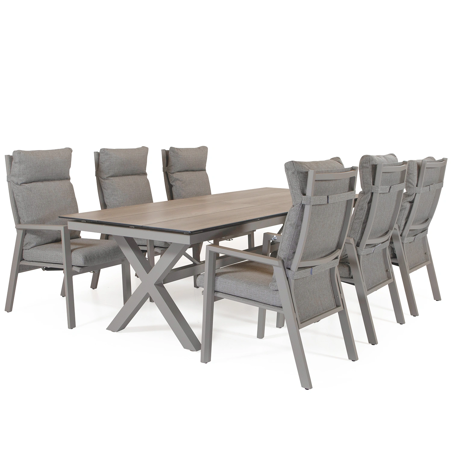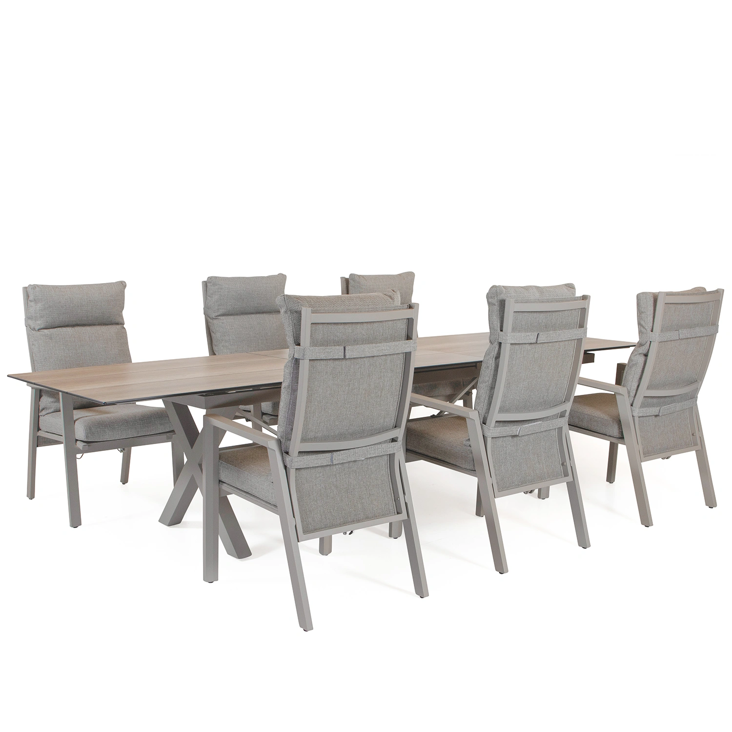 Dallas/York matgrupp mörkgrå - 6 positionsstolar, 220x100 cm
