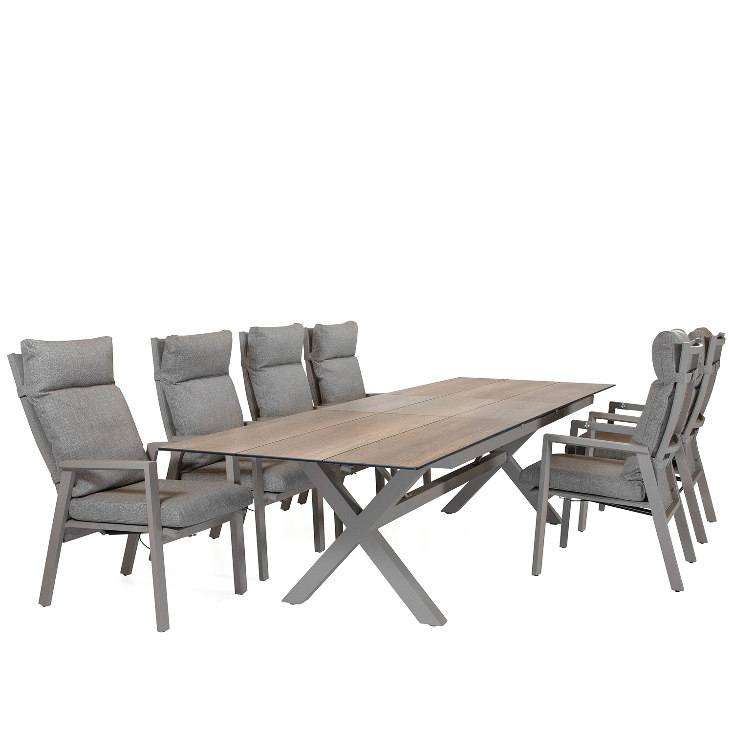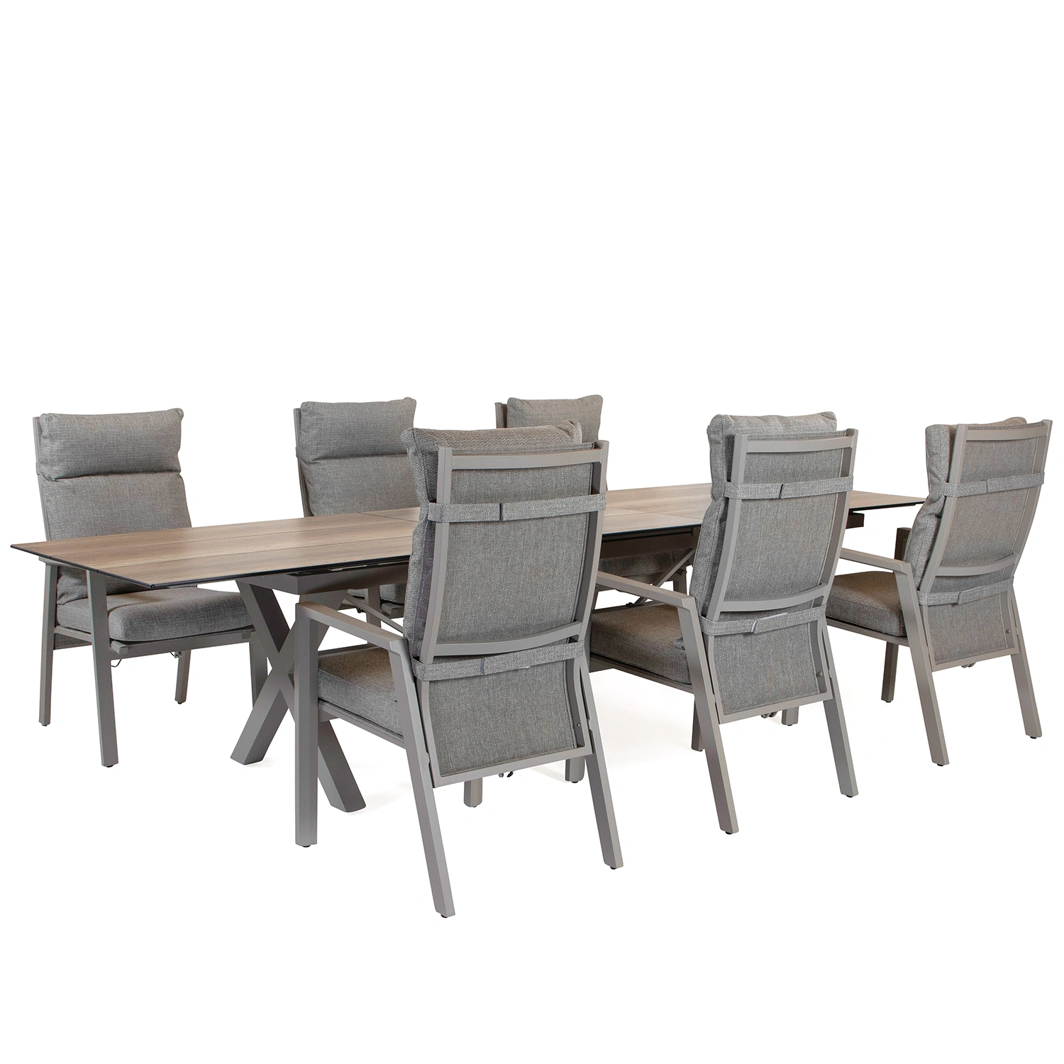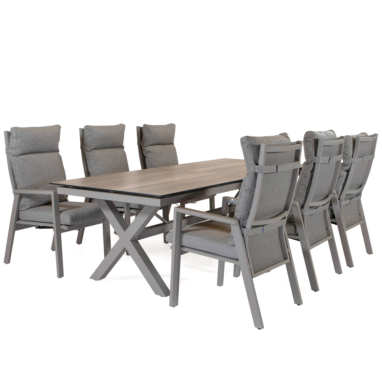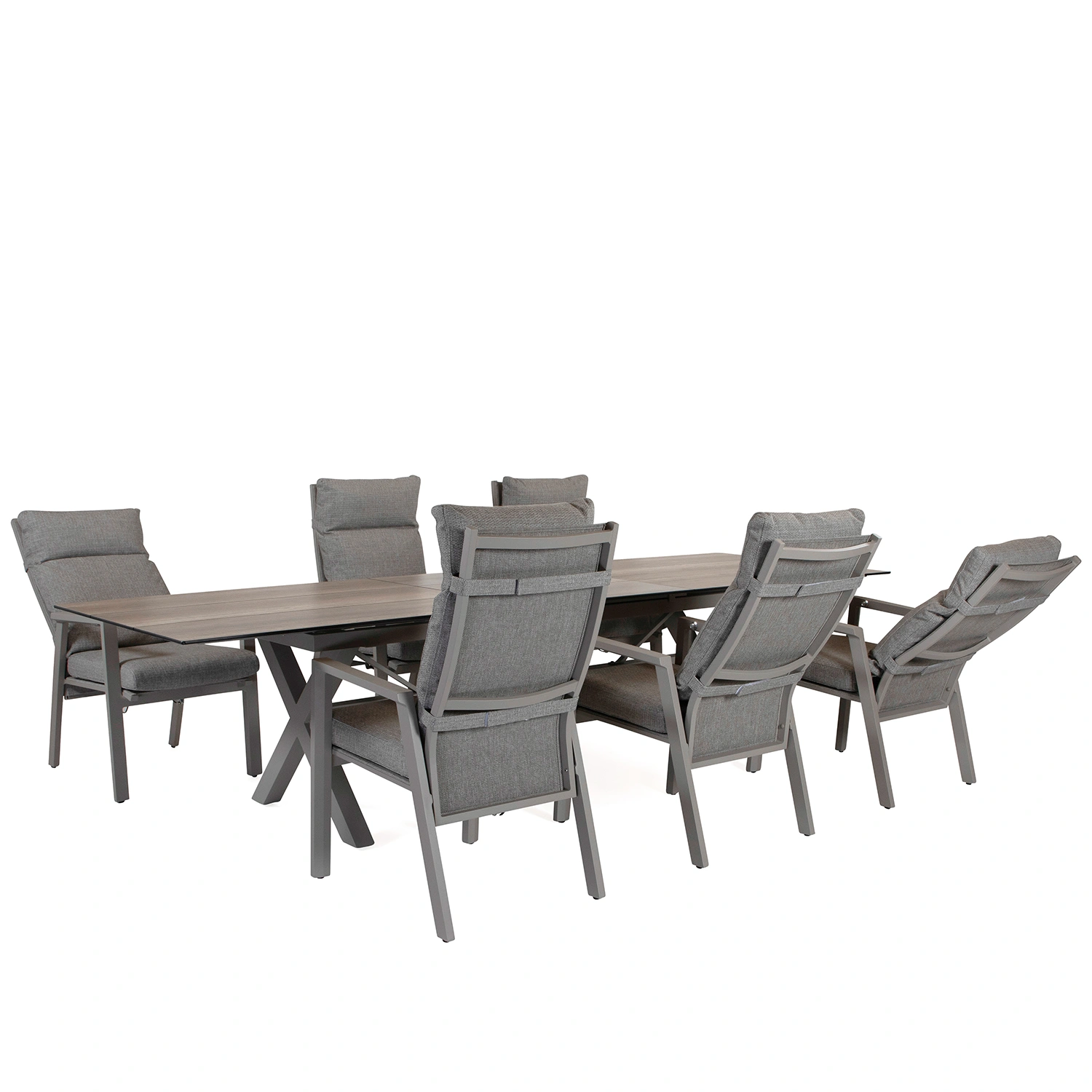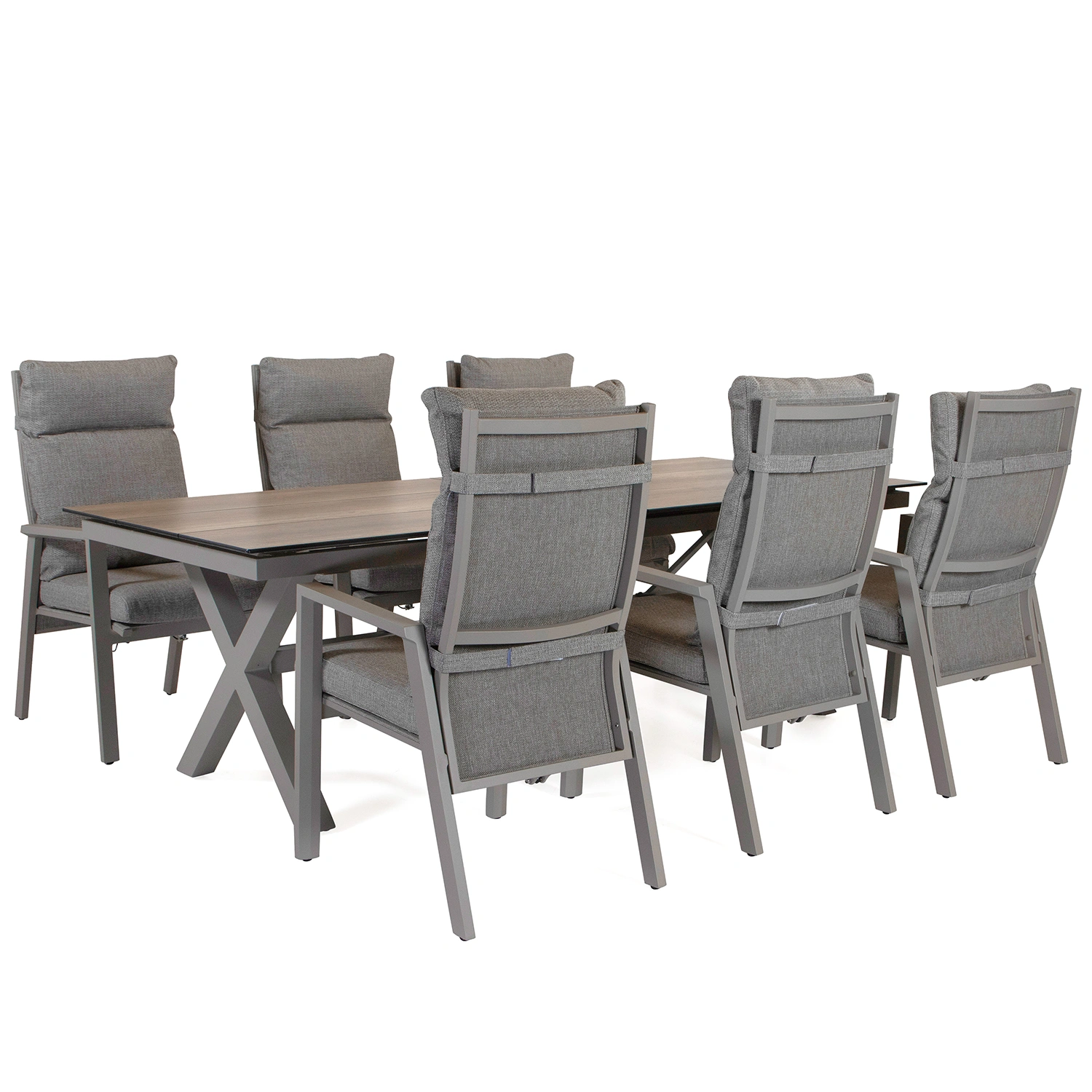 Matgrupp med positionsstolen Palau med ställbar rygg och det förlängningsbara matbordet York. Gruppen består som standard av sex stolar med det rektangulära matbordet på 240 cm.