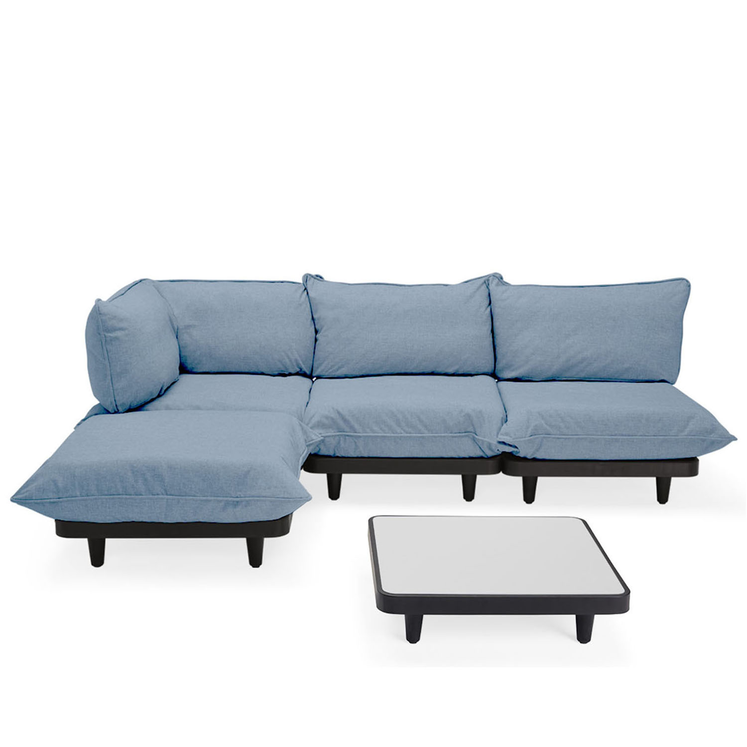 Paletti är en byggbar loungegrupp som finns med svart stomme i polypropen och dynor i olefintyg i flera olika färger. Dynorna är vatten och smutsavvisande och har en återvunnen fyllning med Polyeterhybridskum. Klädslarna är avtagbara och kan tvättas i 40°C.