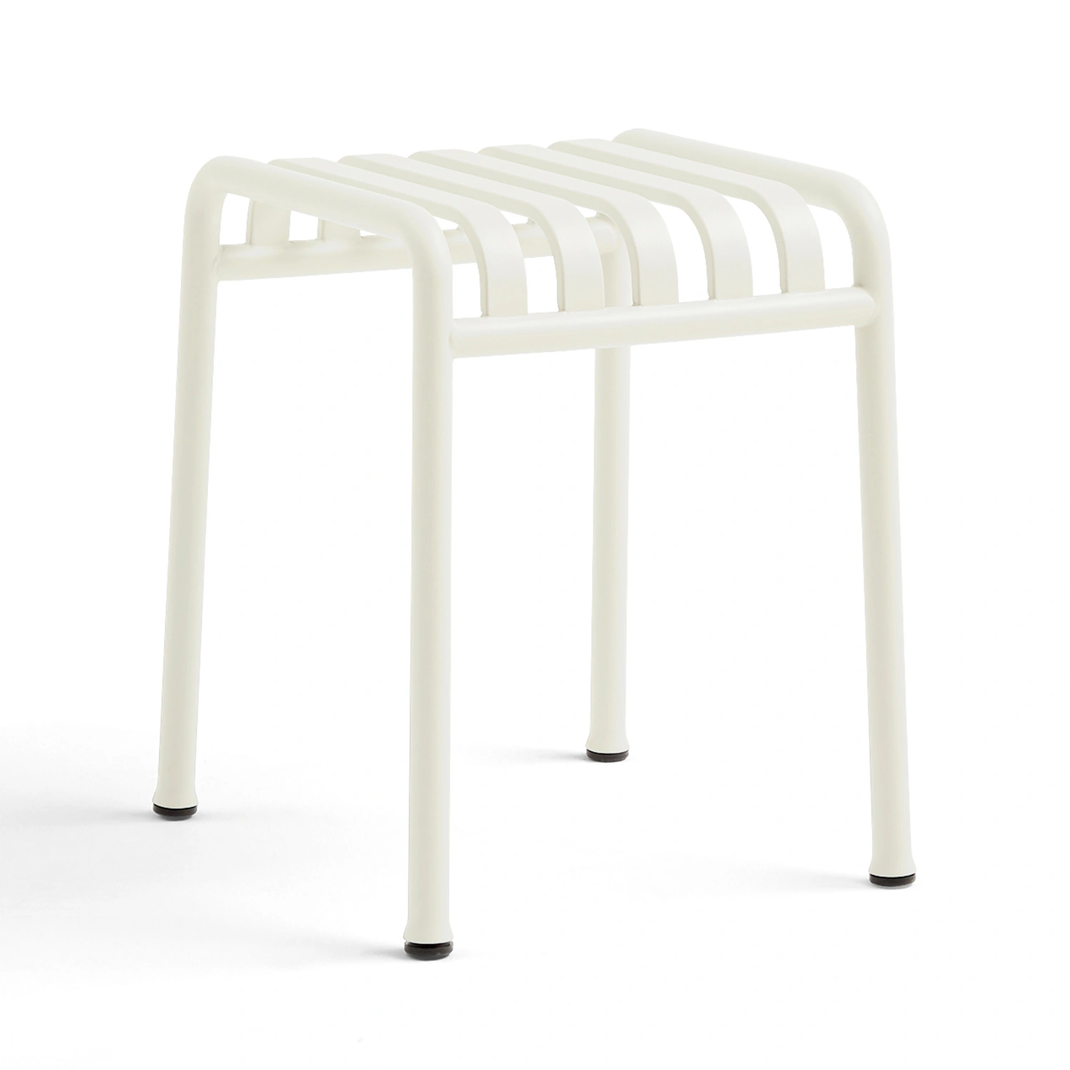 Palissade sittpall för utomhusbruk tillverkad i stål i färgen cream white.