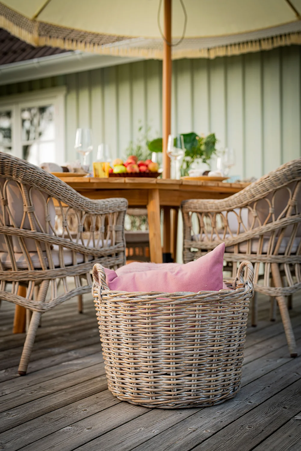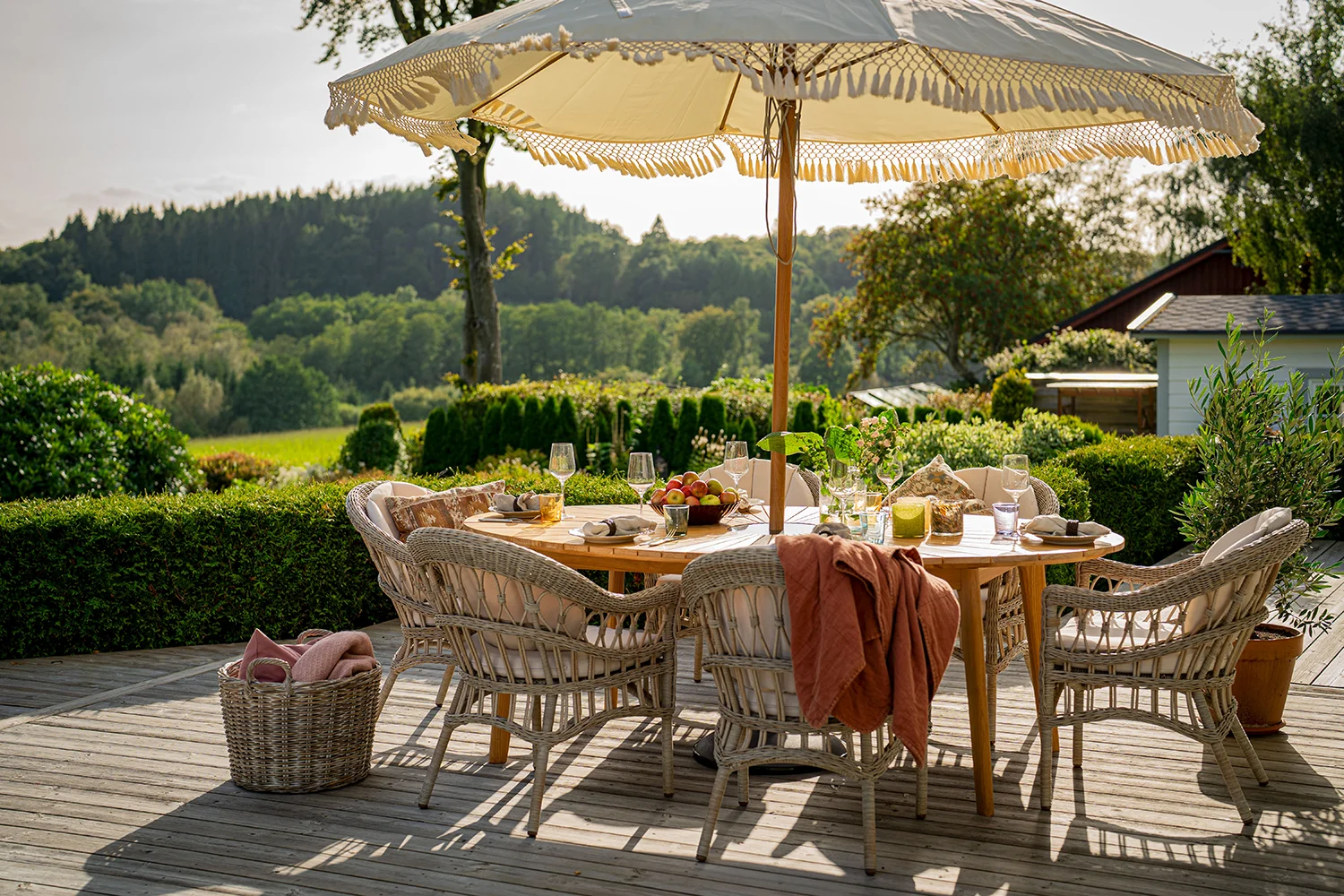 Smakfullt parasoll som ramar in din uteplats och skänker vila från solens strålar en solig sommardag. Idealisk för varma och soliga sommardagar.