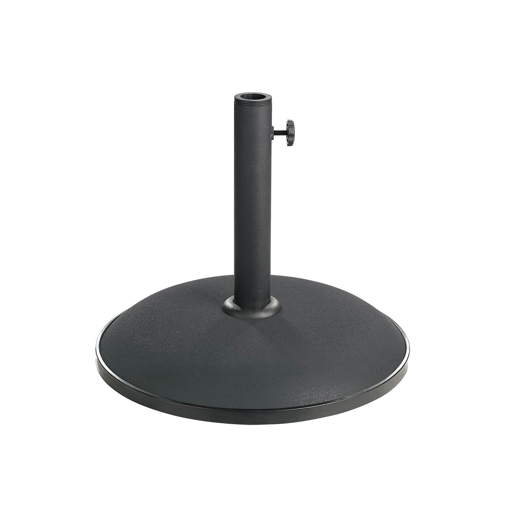 Parasollfoten i 15 kg är tillverkad i svart betong och försedd med en skyddande gummilist som skonar underlaget. Den levereras med tre distanser, vilket gör att den passar parasollstänger med diameter mellan 30–38 mm.