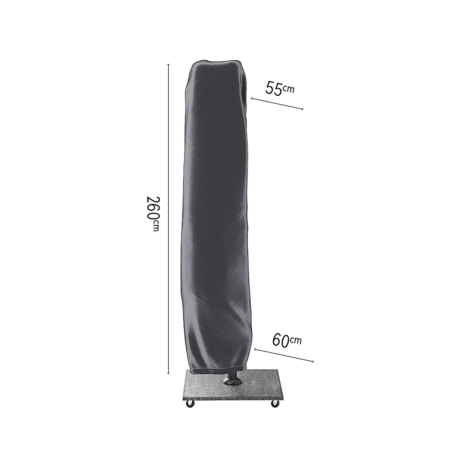 Detta skydd är framtaget för att passa frihängande parasoll. Detta skydd passar hängarmsparasoller med rak stolpe och storlek på 320×320, 350×260 and 260×350 cm. Mät ditt parasoll på bredden i hopfällt läge för att se vilket skydd som passar ditt parasoll.
