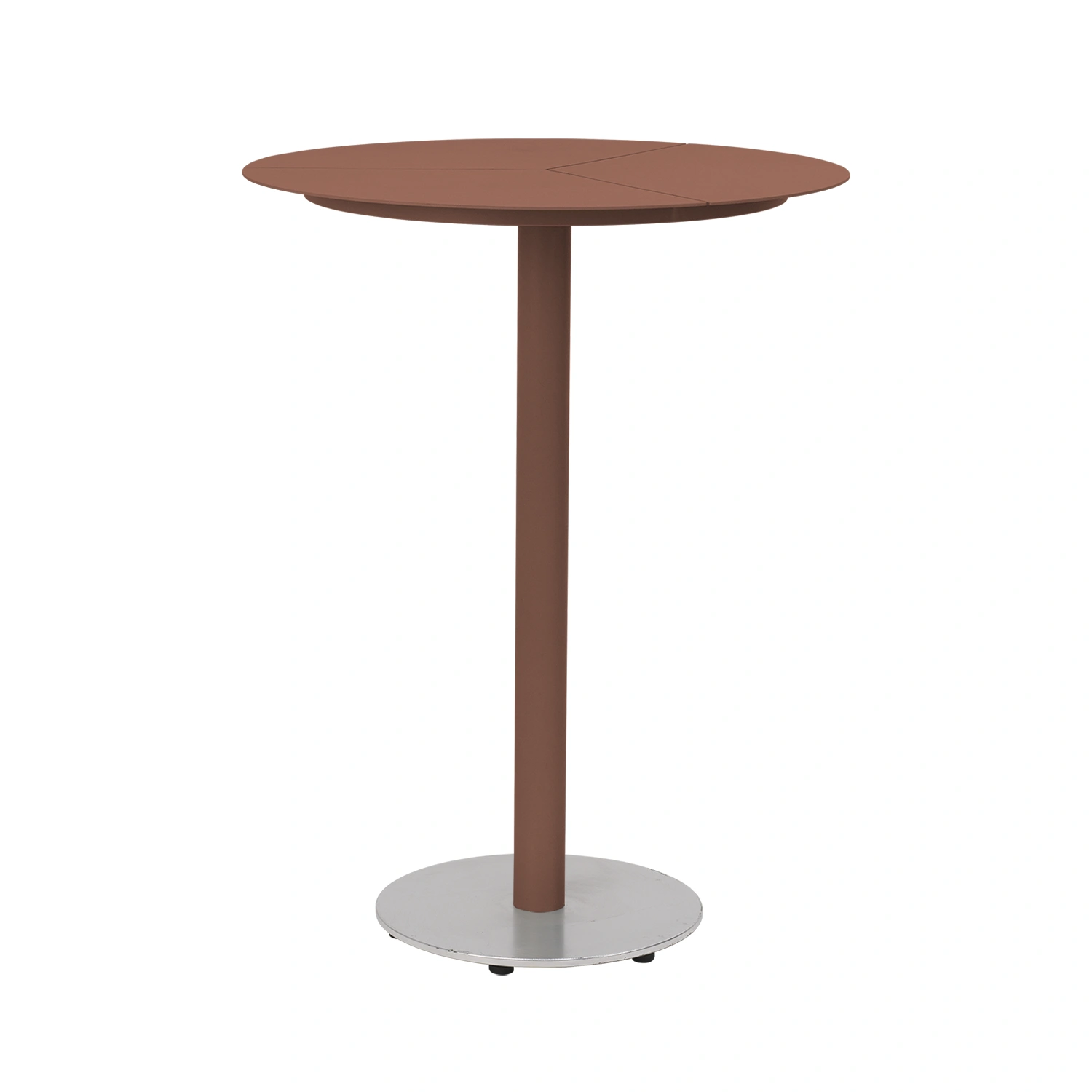 Peace barbord har en pulverlackerad stomme och en borstad, anodiserad aluminiumplatta i basen som står emot märken och slitage. Med ståhöjd och rund bordsskiva är det perfekt för avslappnade sammankomster eller offentliga miljöer.