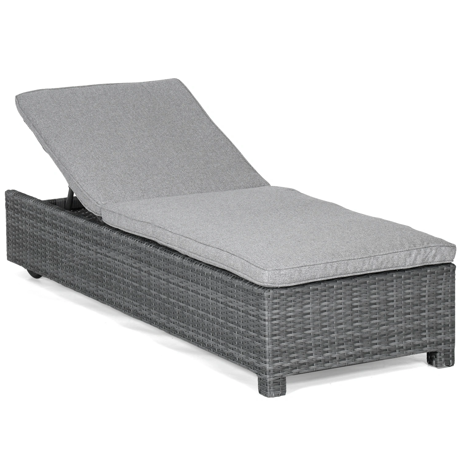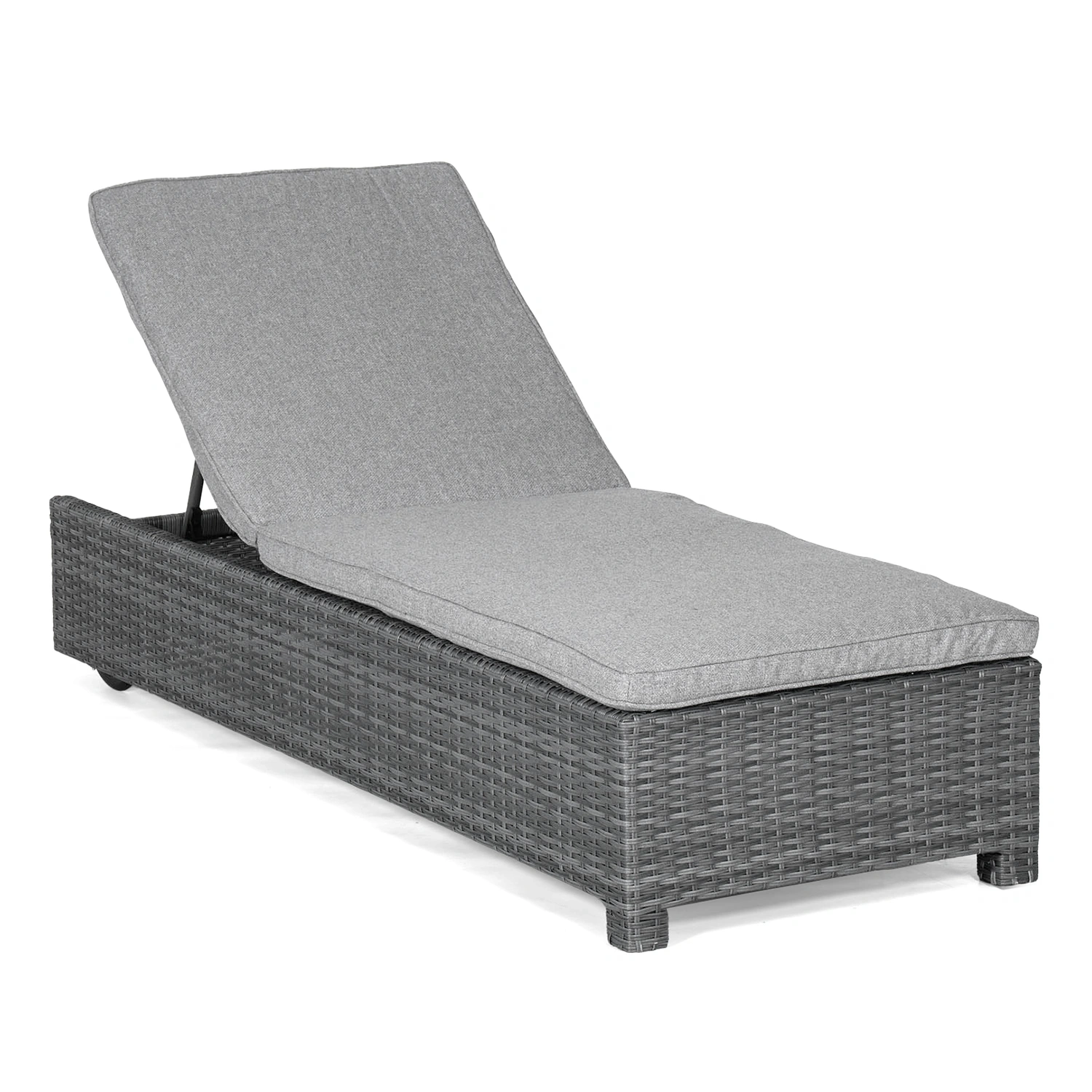 Två stycken Playa solsäng i antracitgrå konstrotting med stomme av aluminium. Solsängsdynor i ljusgrått olefintyg ingår.