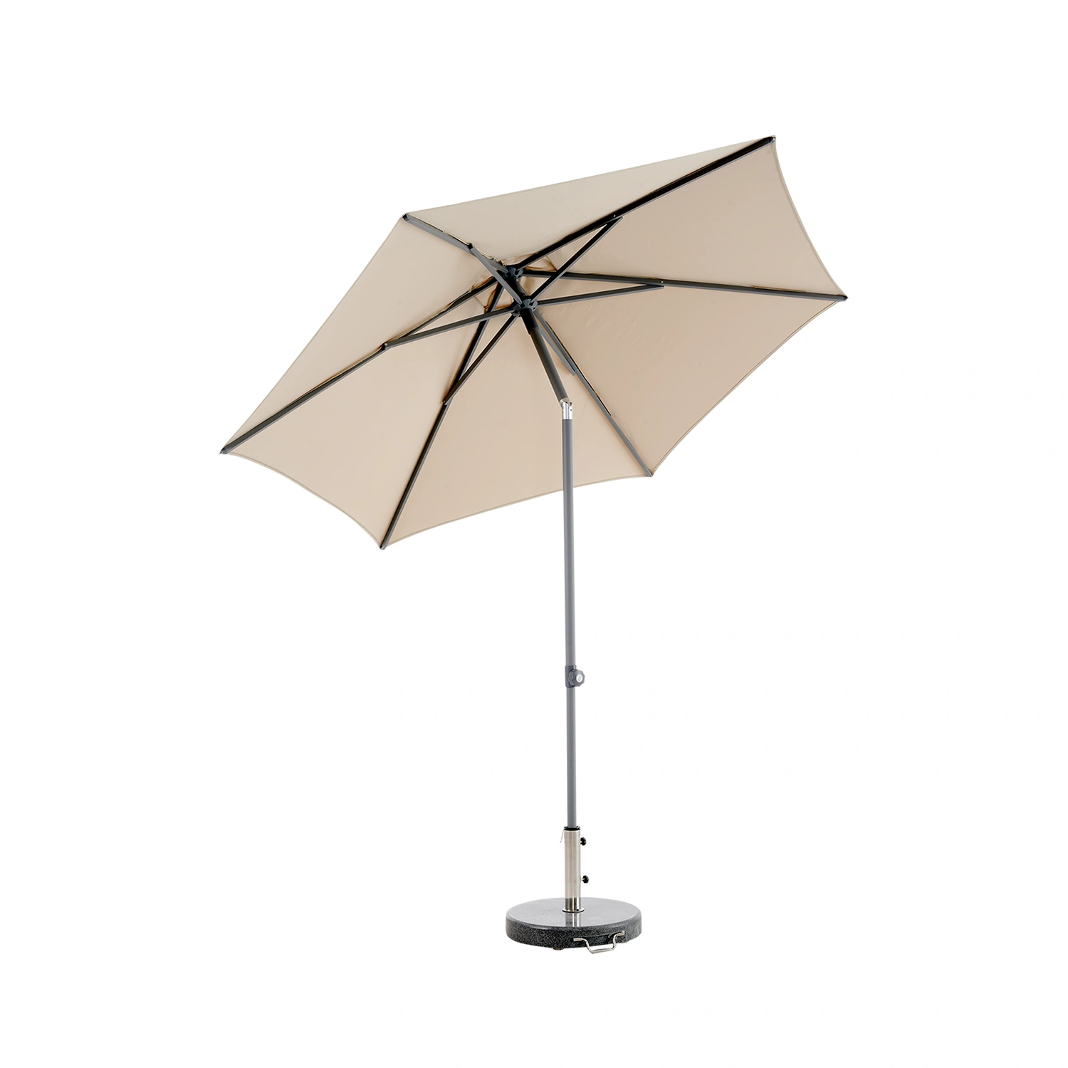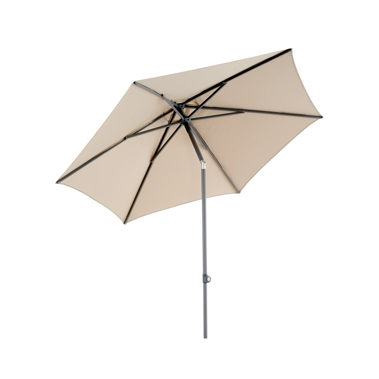 Poppi parasoll i färgen champagne i storleken 250 cm. Poppi-parasollet finns även i en mindre och en större variant.