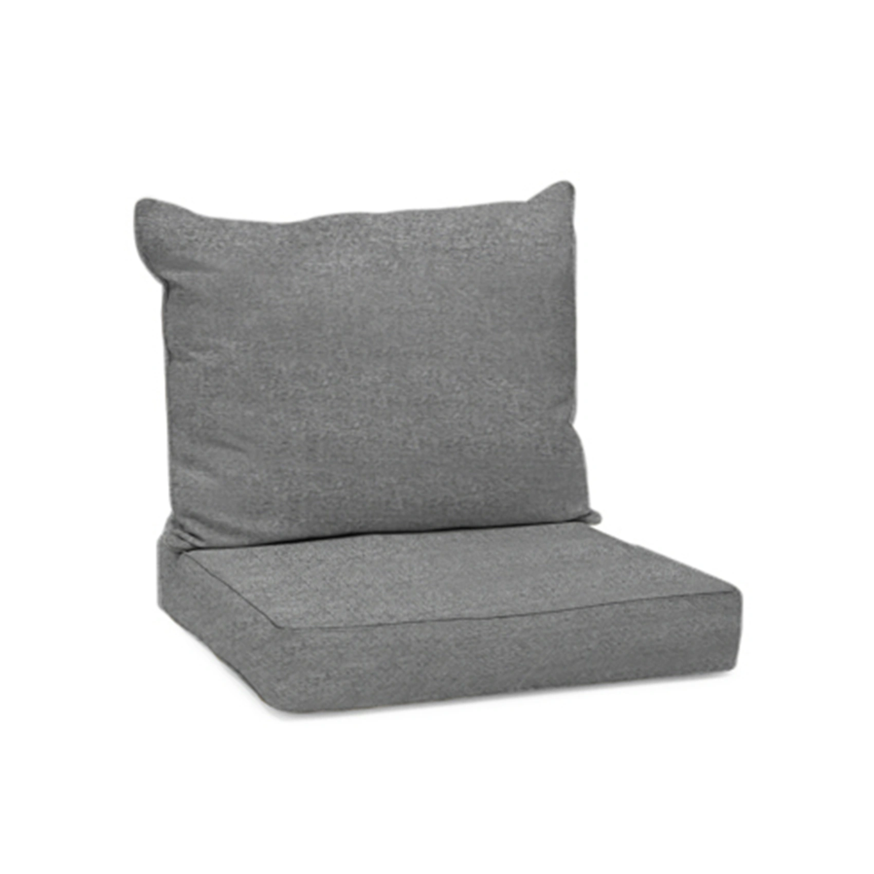 Dynset i grå melange polyester. Sittdynan är 60x55x12 cm och fylld med en polyesterkärna med omslag av fibervadd som mjukar upp och ger dynan ett välfyllt utseende. Ryggkudden är 60×55 cm, mjukt och komfortabelt stoppad för att ge många behagliga stunder i din möbelgrupp.