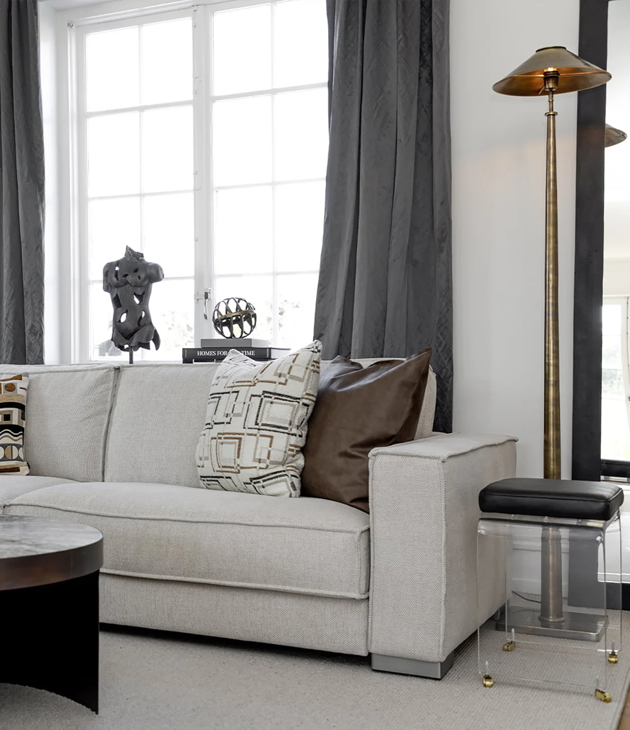 Golvlampa i metall med en minimalistisk och stilren design som smälter in i de flesta miljöer och rum. Tack vare sin nätta utformning tar den lite plats och kan enkelt placeras bredvid soffan, fåtöljen eller i ett av hemmets hörn. Lampskärmens design ger ett nedåtriktat, mjukt och behagligt ljus som skapar en varm och inbjudande atmosfär. Perfekt för dig som söker en funktionell och estetisk belysningslösning.