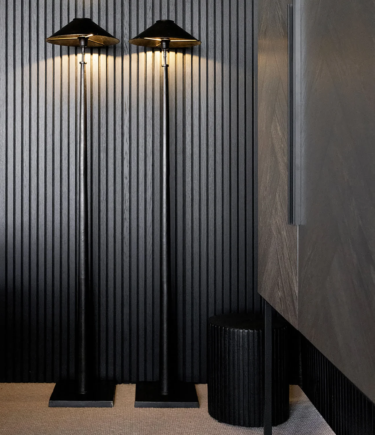 Golvlampa i metall med en minimalistisk och stilren design som smälter in i de flesta miljöer och rum. Tack vare sin nätta utformning tar den lite plats och kan enkelt placeras bredvid soffan, fåtöljen eller i ett av hemmets hörn. Lampskärmens design ger ett nedåtriktat, mjukt och behagligt ljus som skapar en varm och inbjudande atmosfär. Perfekt för dig som söker en funktionell och estetisk belysningslösning.