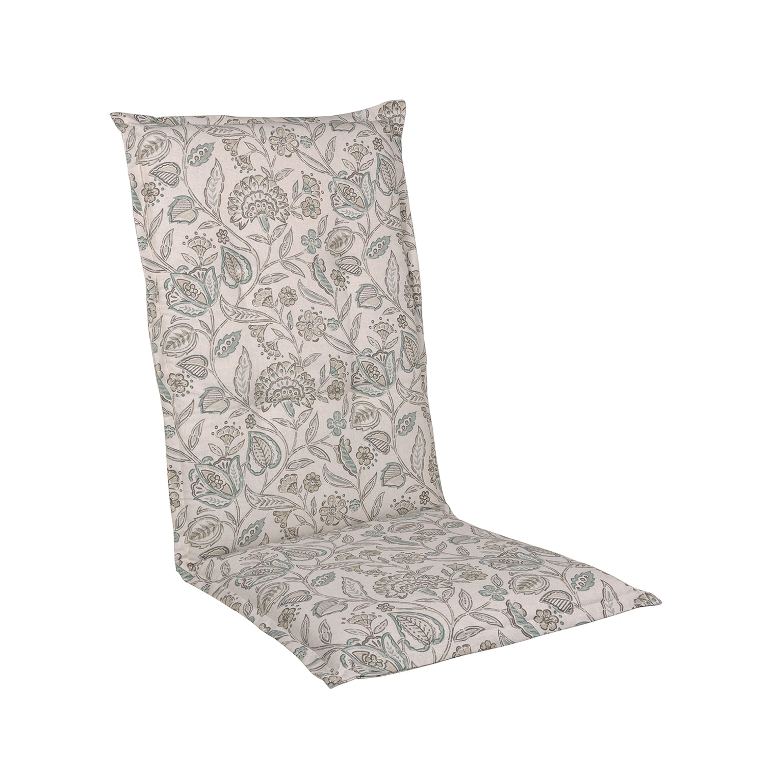 Positionsdyna med stoppning i polyeter och fibervadd. Dynan är sydd i Vinemönstrat tyg som är tillverkat av polyester och bomull (90% polyester, 10% bomull) med vinge runt om. Tyget är tillverkat av återvunnen bomull, polyester och annan textil. Dynan är lite tjockare i sitsen än i ryggen.