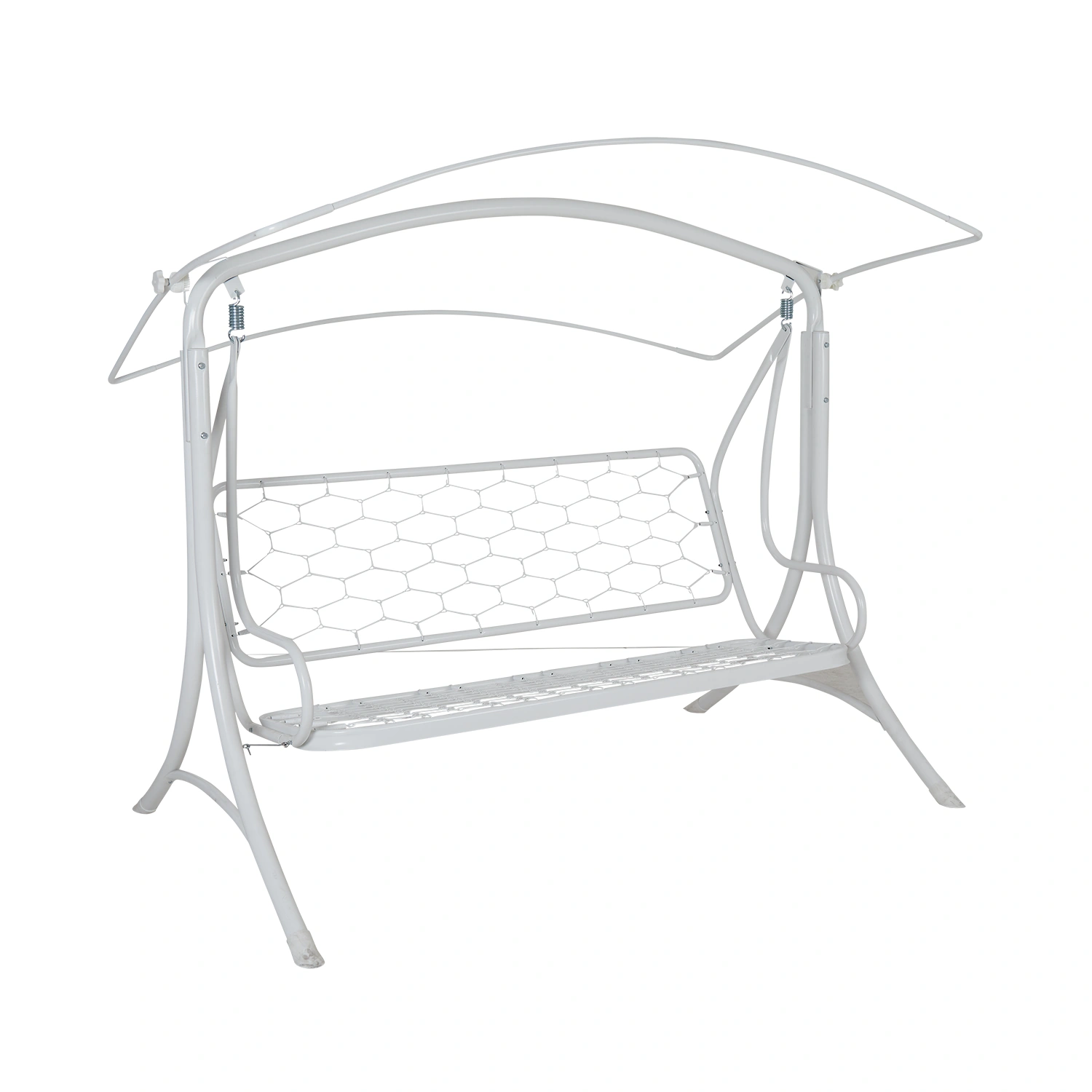 Hammocken Prag har en spännande form med ett välvt tak. Stativet är av 50 mm grova förzinkade och epoxylackerade rör. Prag finns vitt och svart.