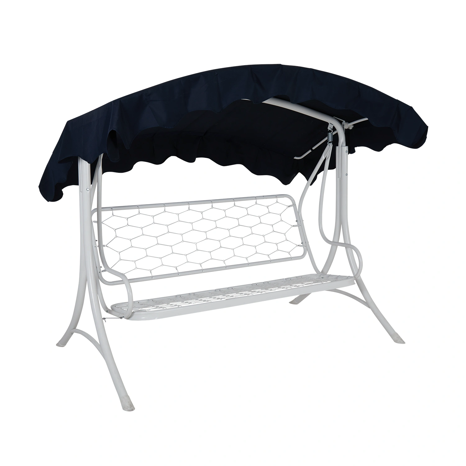 Hammocken Prag har en spännande form med ett välvt tak. Stativet är av 50 mm grova förzinkade och epoxylackerade rör. Prag finns vitt och svart.