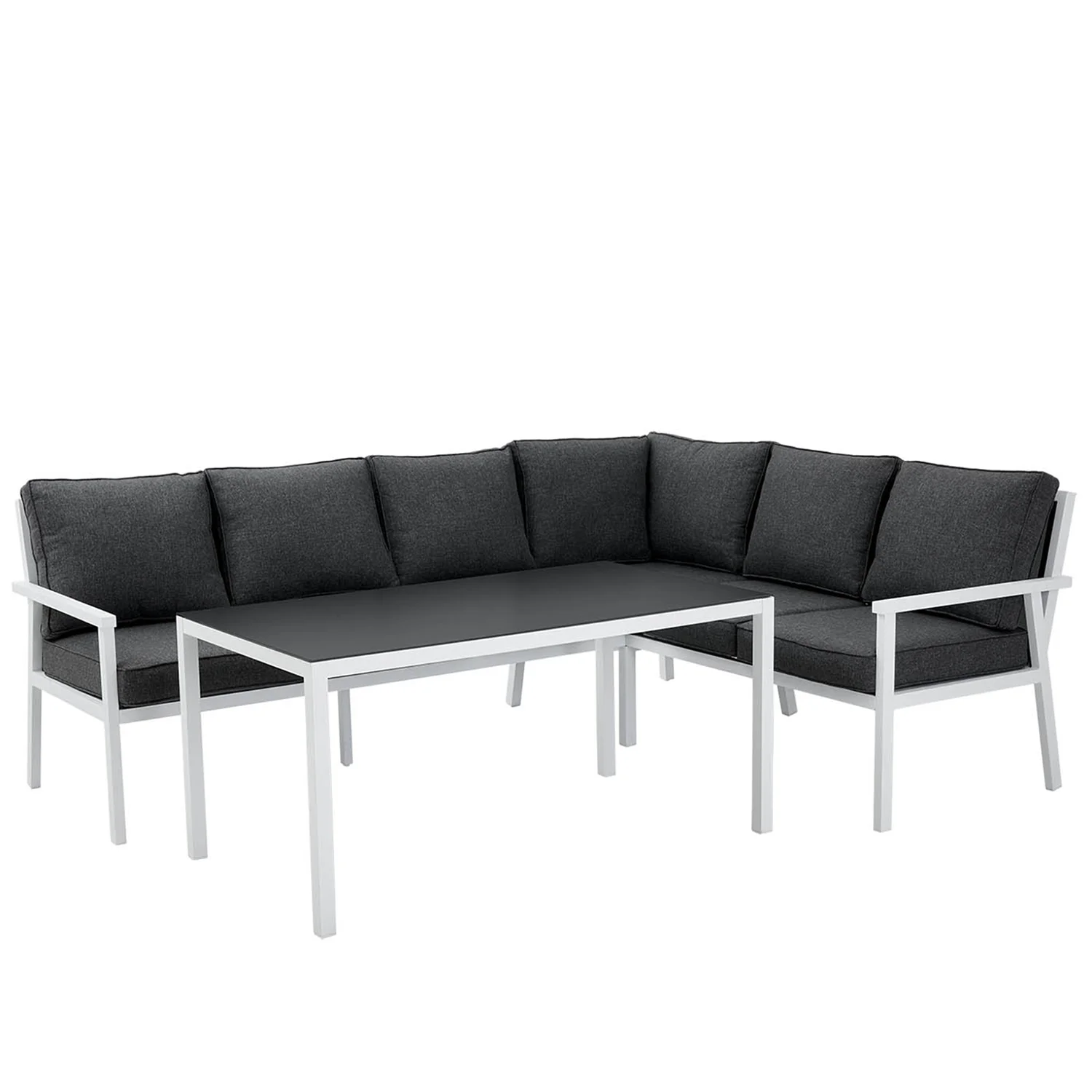 Rana hörnsoffa inklusive bord i vitt. Här visas den högervända soffgruppen, med den långa delen till höger (när man sitter i soffan).